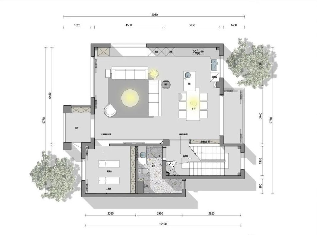1、重新规划了一楼空间,体现出了大客厅、大餐厅、大厨房的理念。同时将入户处外扩进花园,让居住空间和户外花园联系的更紧密;