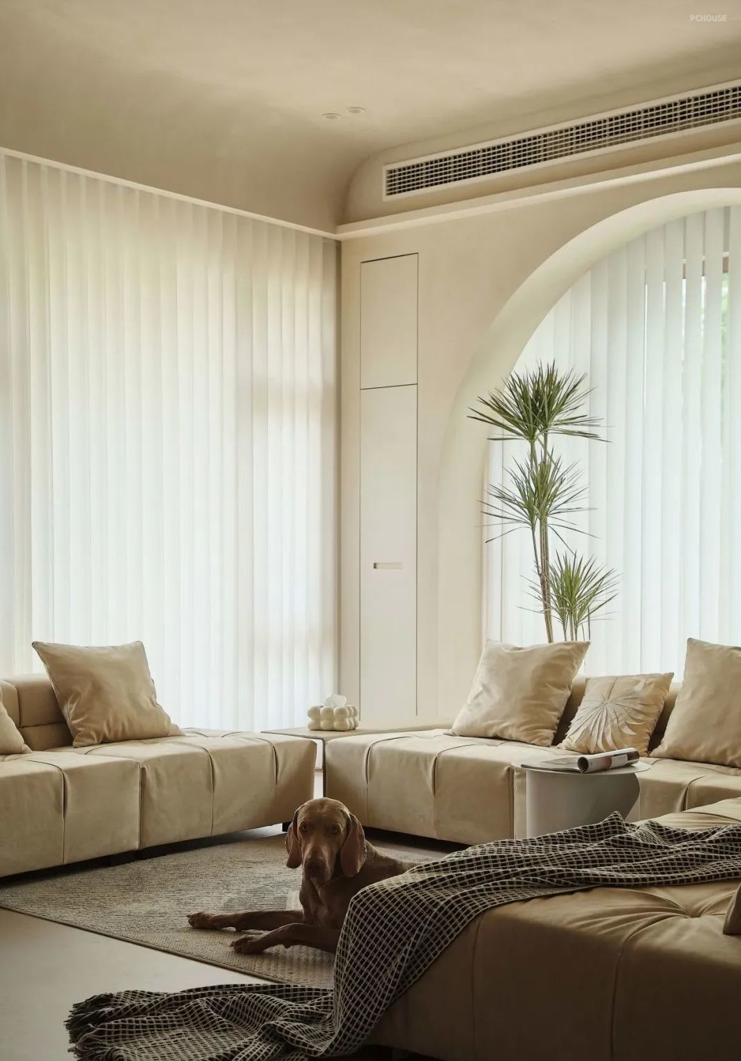 前言: 侘寂风格的客厅,整个空间呈现出柔和的奶咖色调,有一种宁静而舒适的感觉。这种风格的设计思路就是注重极简主义,摒弃繁复的装饰,专注于展现事物的本真之美。