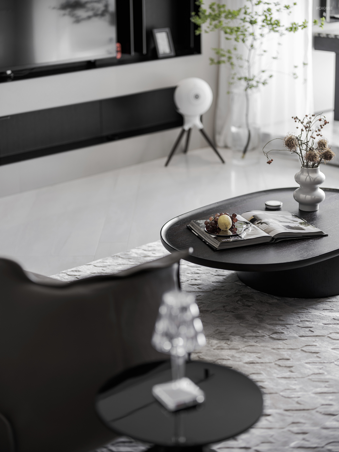本案我们命名为《磐羽》,磐石与轻羽,寓意风格里极致的黑与白,它们跨越时与空的维度,干净纯粹包含了所有色彩,又蕴藏无数种变幻,容纳日常悄然生长的情绪,也滋养生活中骤然的惊喜。