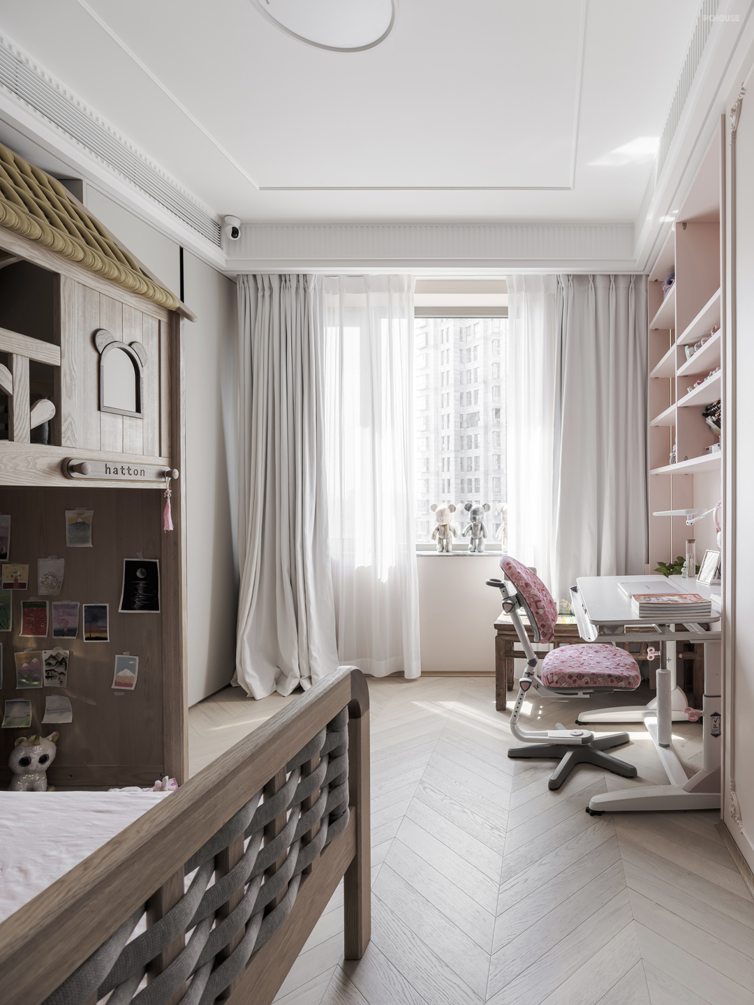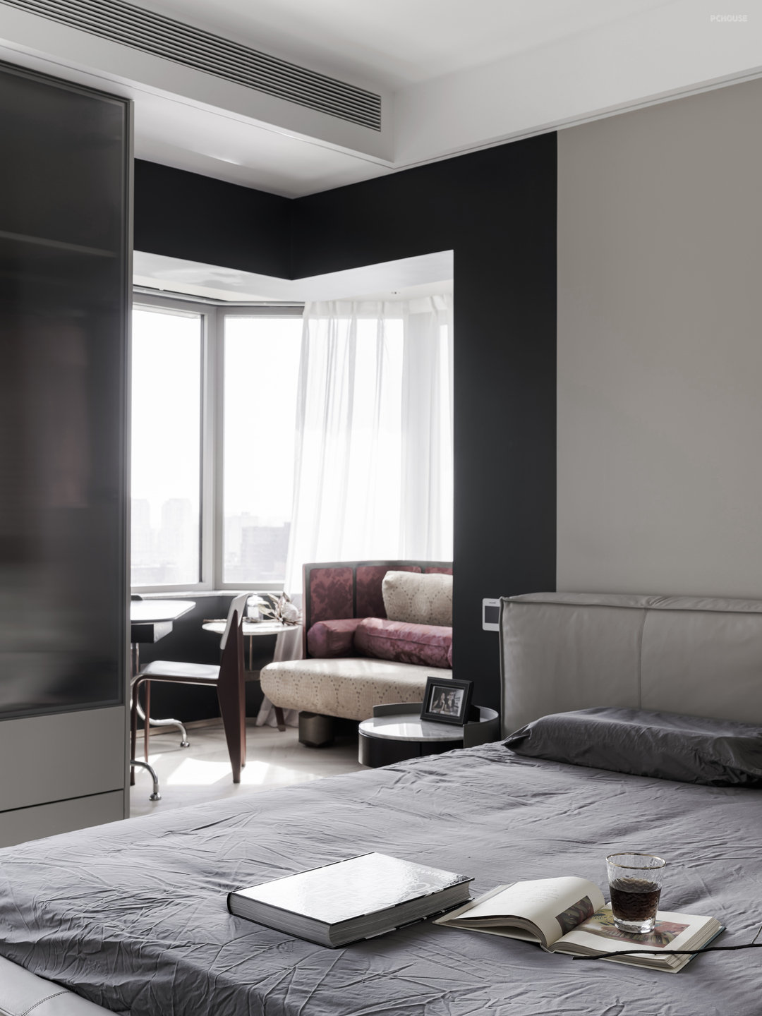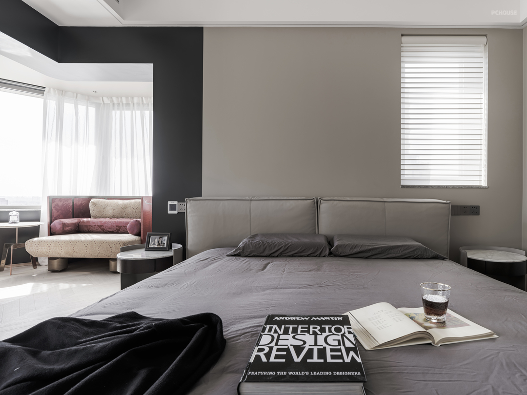 卧室更注重温馨的表达,选择偏向于低饱和度的灰调色彩,牵引向温暖的内心感受。