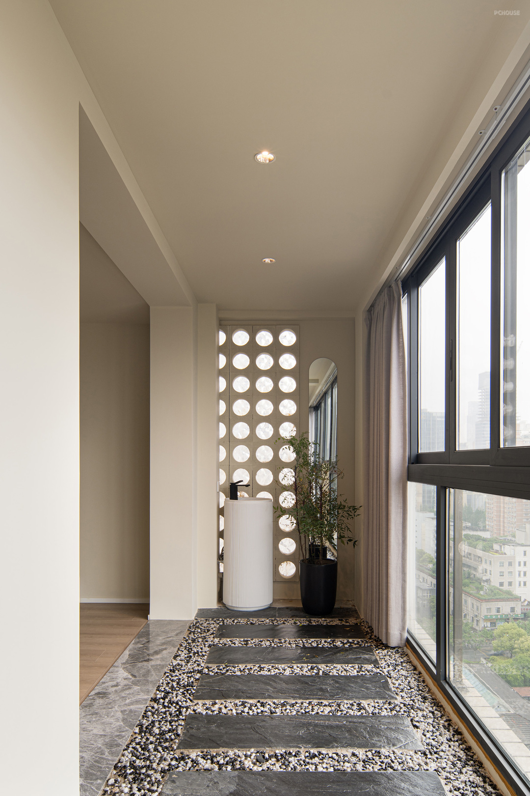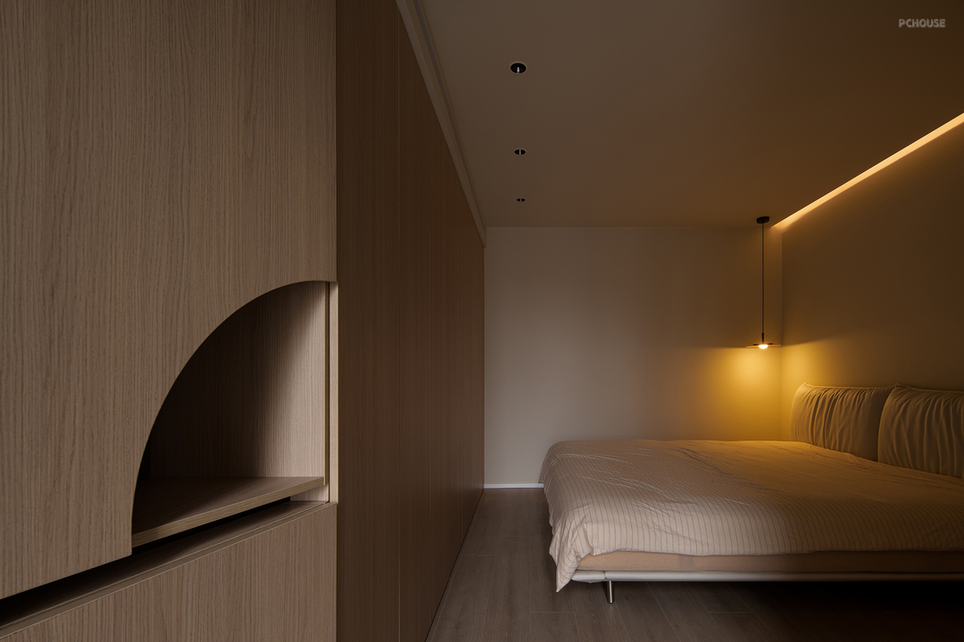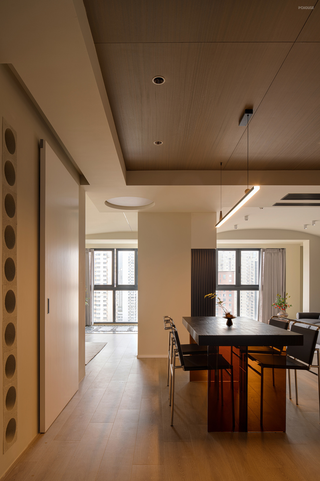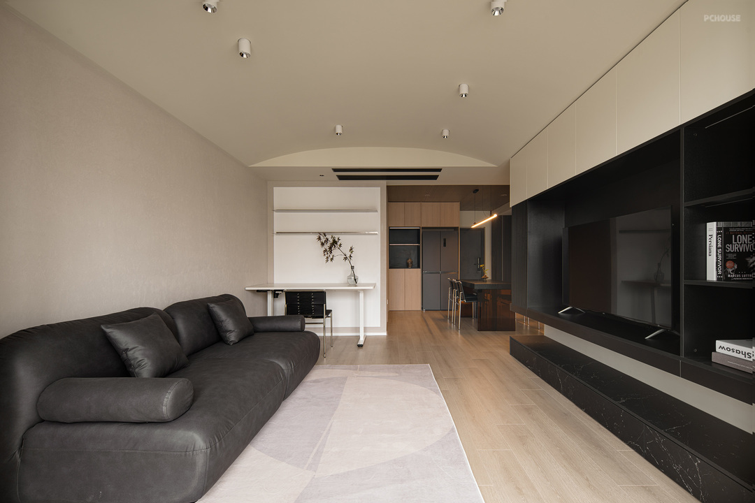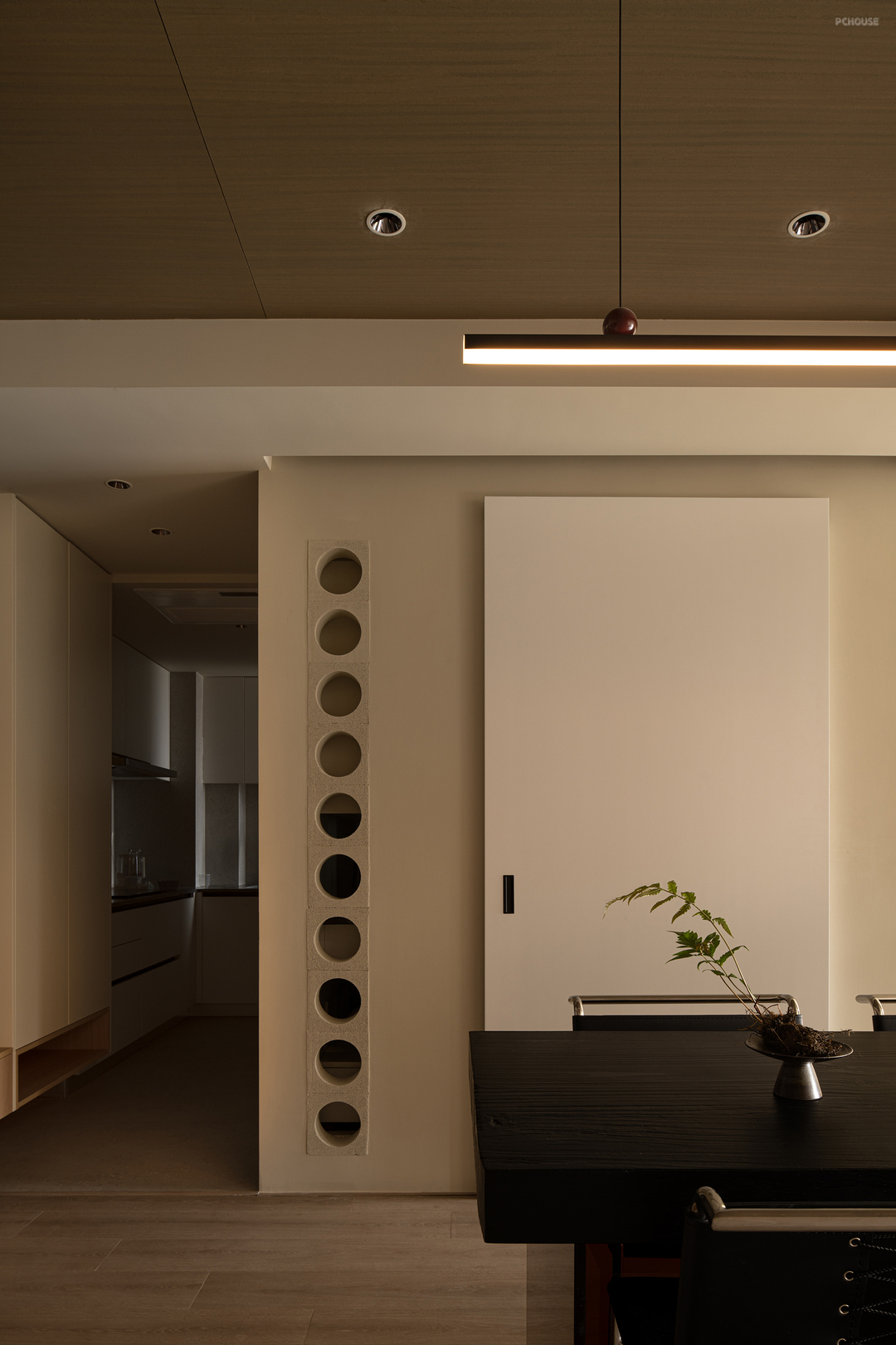 屋主偏爱简约生活,在这适中的空间里,我们更注重释放每个独立空间的立面,减少对背景墙的依赖,将每个空间的立面细腻地拆解并重新组合,使之融为一个和谐的整体,而非孤立的存在。