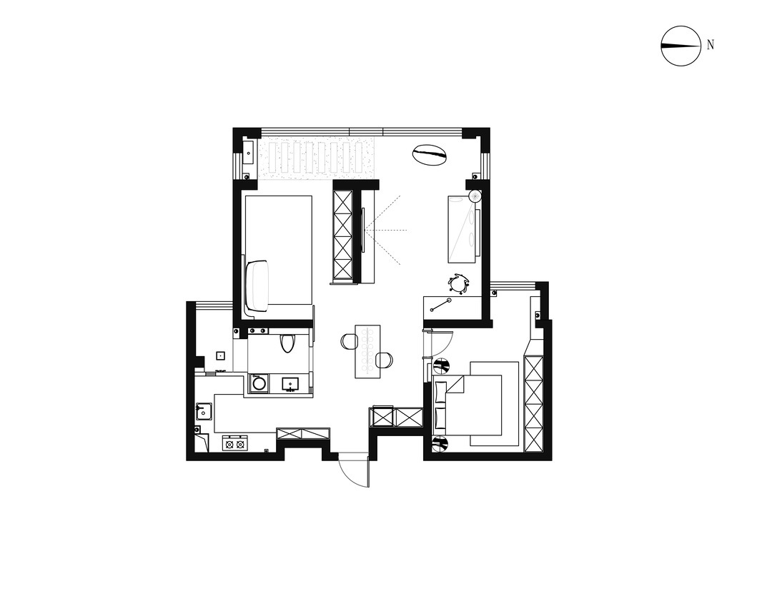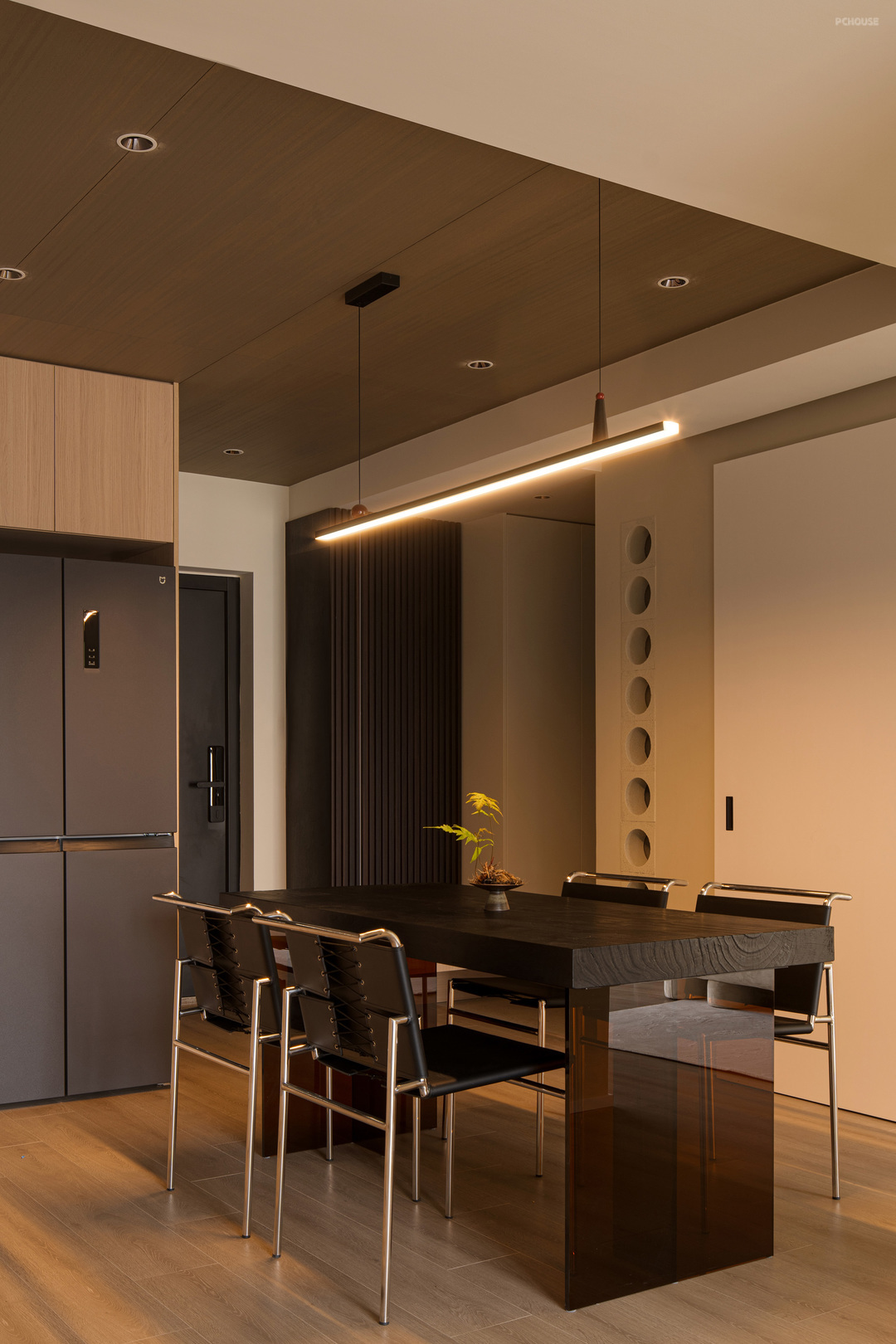 在空间重构的巧思中,我们拓宽了玄关,巧妙融合了更衣区域,使得空间更加流畅。厨卫边界的内推,与废弃阳台的整合,不仅扩展了生活版图,更让空间充满了可能性。保留的管道,如同借光之桥,为餐厅添上一抹温馨的氛围。