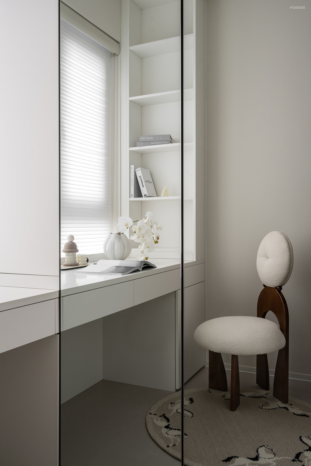 梳妆台应该没有女生不爱吧!奶油白和胡桃木的化妆凳坐起简直不要太舒服!通过改造和细节的推敲,最终呈现“小心脏,大容量”,五脏俱全的化妆间~