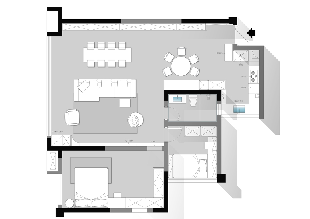 2.主卫改为衣帽间,让主卧增大,满足更多功能需求。