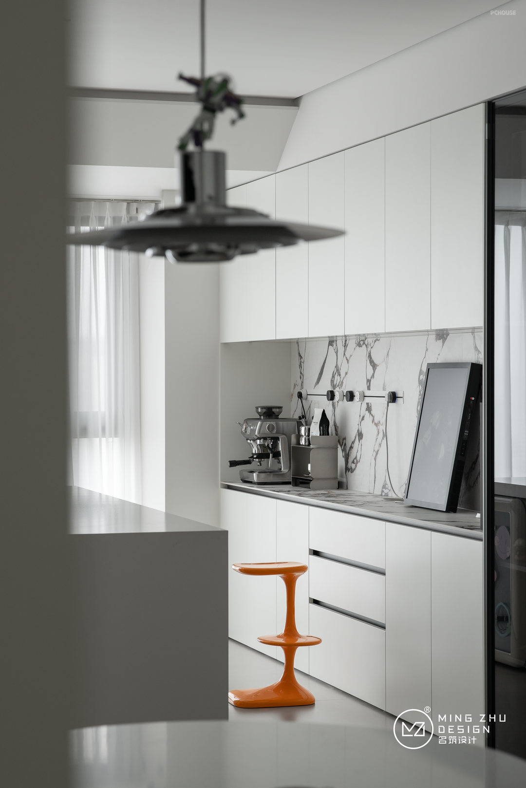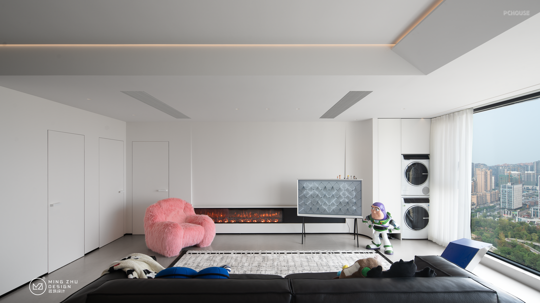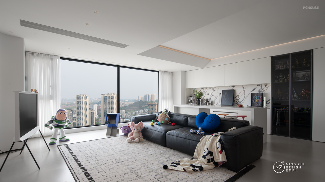 沙发后的休闲区,可以聚会,办公,品咖啡,听音乐,是屋主身心放松的窝心一角。全开放的客厅,没有多余的屏风或背景墙,小朋友可以肆意玩耍,丰富的采光也照顾到了客厅的每个角落。通透性非常强。