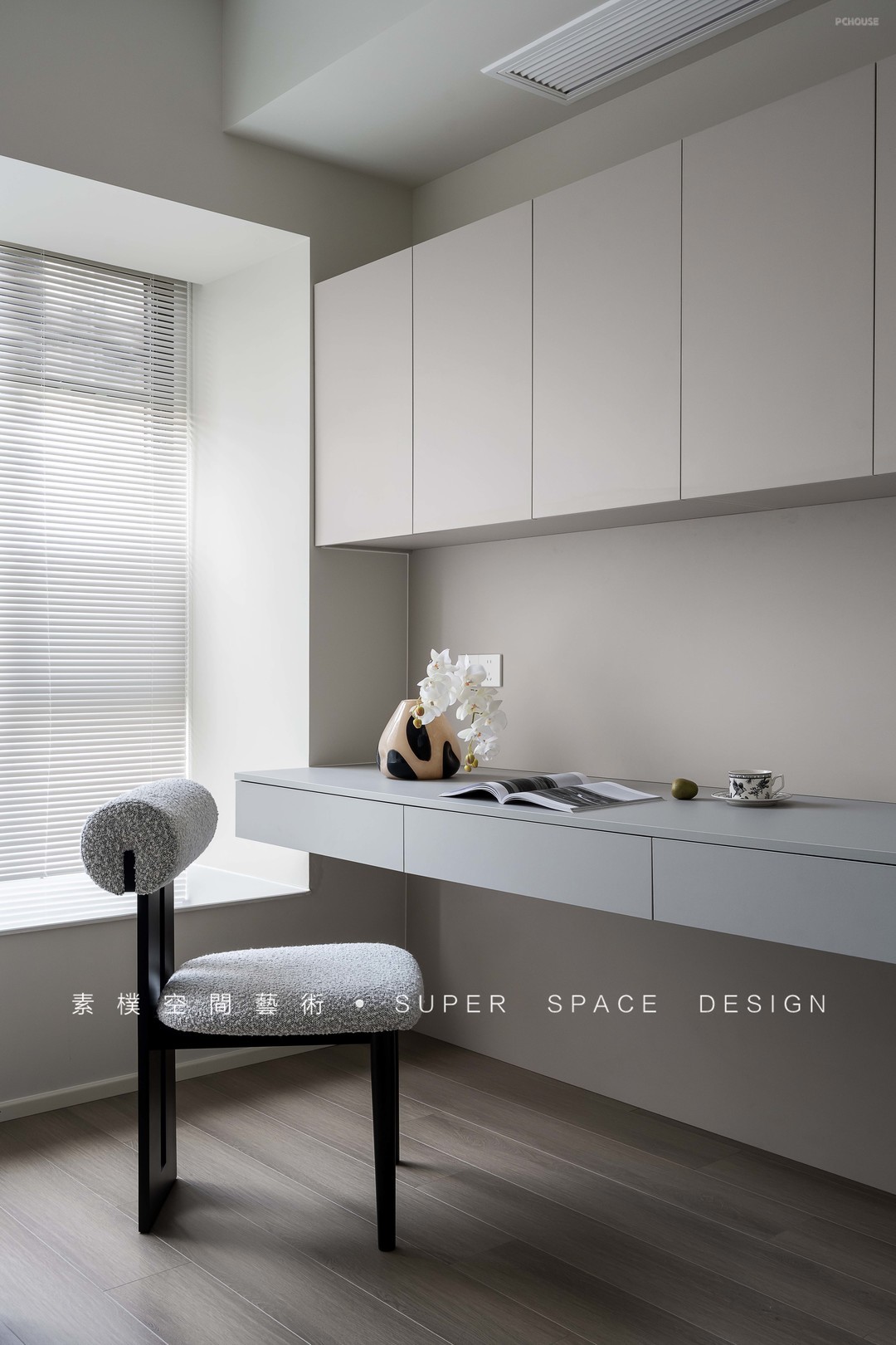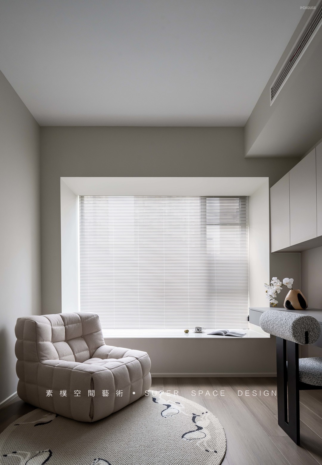卧室里面,这个小小角落就是留给自己的温柔。软软的单人沙发包裹一天的疲惫;温柔的灯光点亮无力的黑夜;满墙的衣柜挂满所有的美丽衣裳。原木的温柔与白色的利落,充满整个祥和的空间。