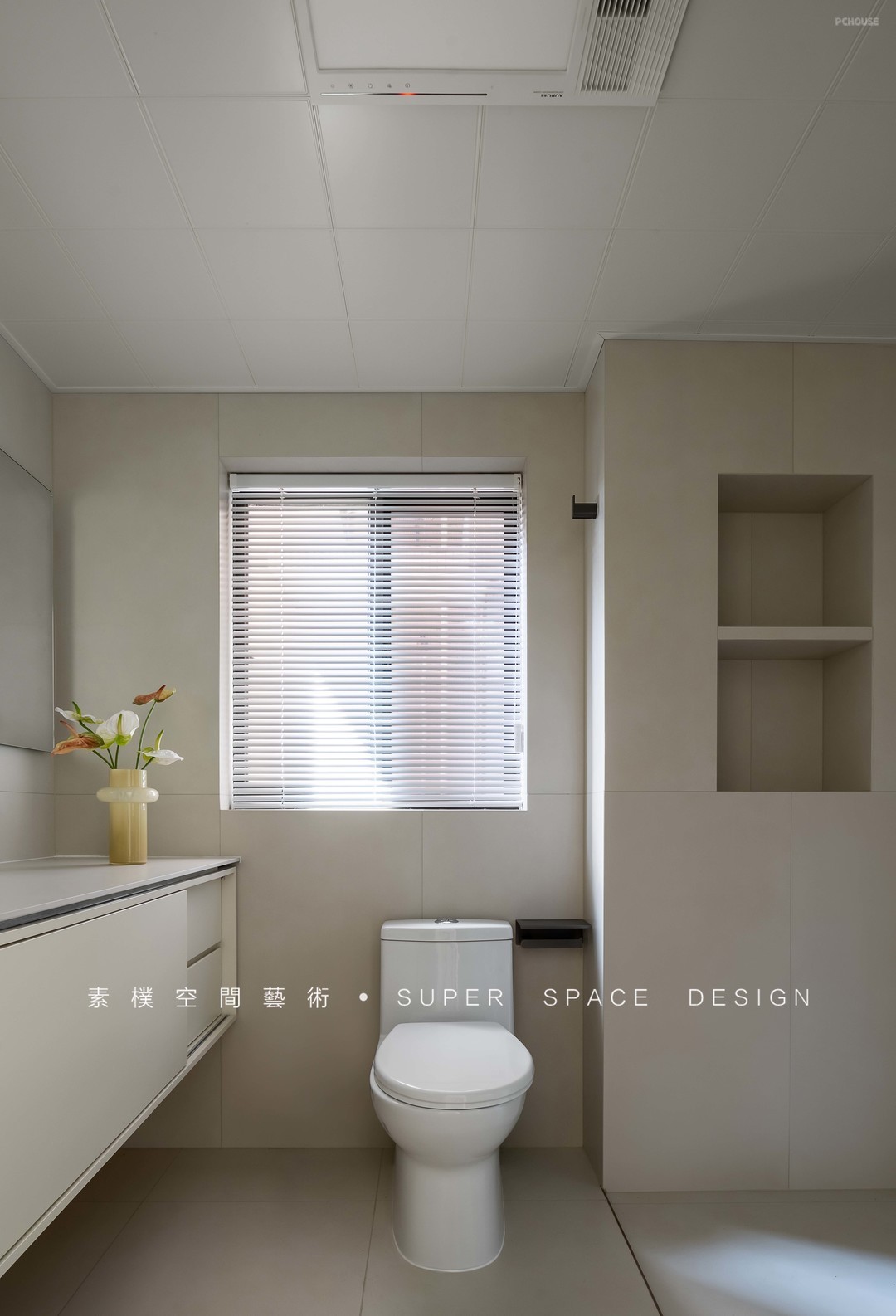 大道至简,举重若轻。穿过主卧,入目没有繁杂的装饰,整个空间的材质选择,遵循和主卧的共处,用顺从来记录光明,迎接每一位短暂停留的过客,却没有任何怨言。