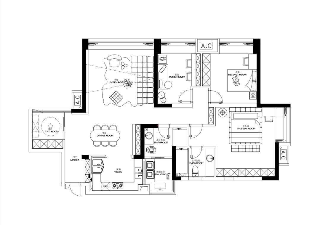 1.目前是小两口常住,主卧希望宽敞舒适。