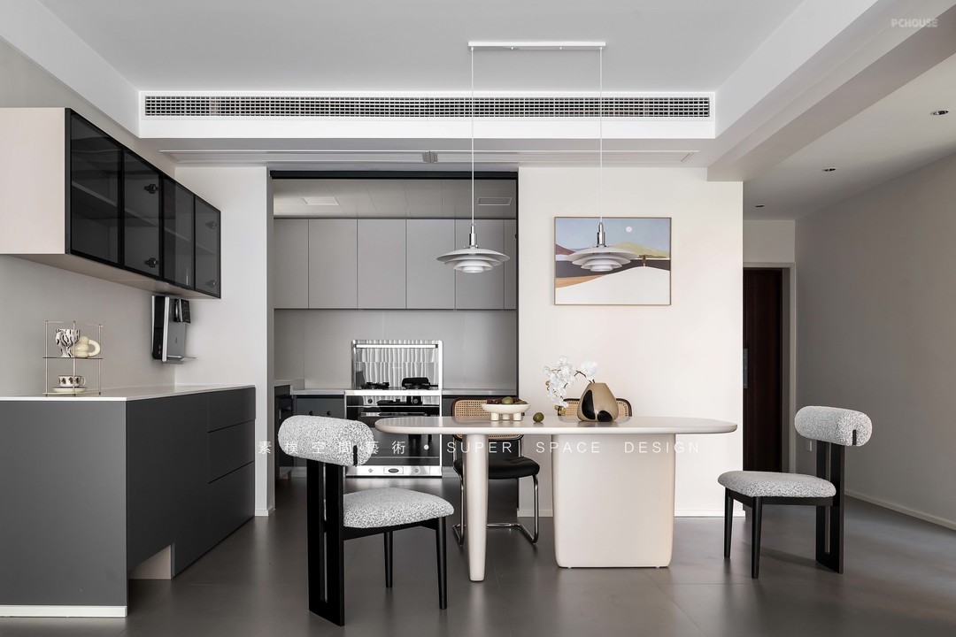 3.厨房做可开可合推拉门,与开放式餐厅连接又独立,餐厅外面紧接着客厅,整个空间被光照耀,显得又大又敞亮!会客、玩耍、工作等等都可以轻松进行。