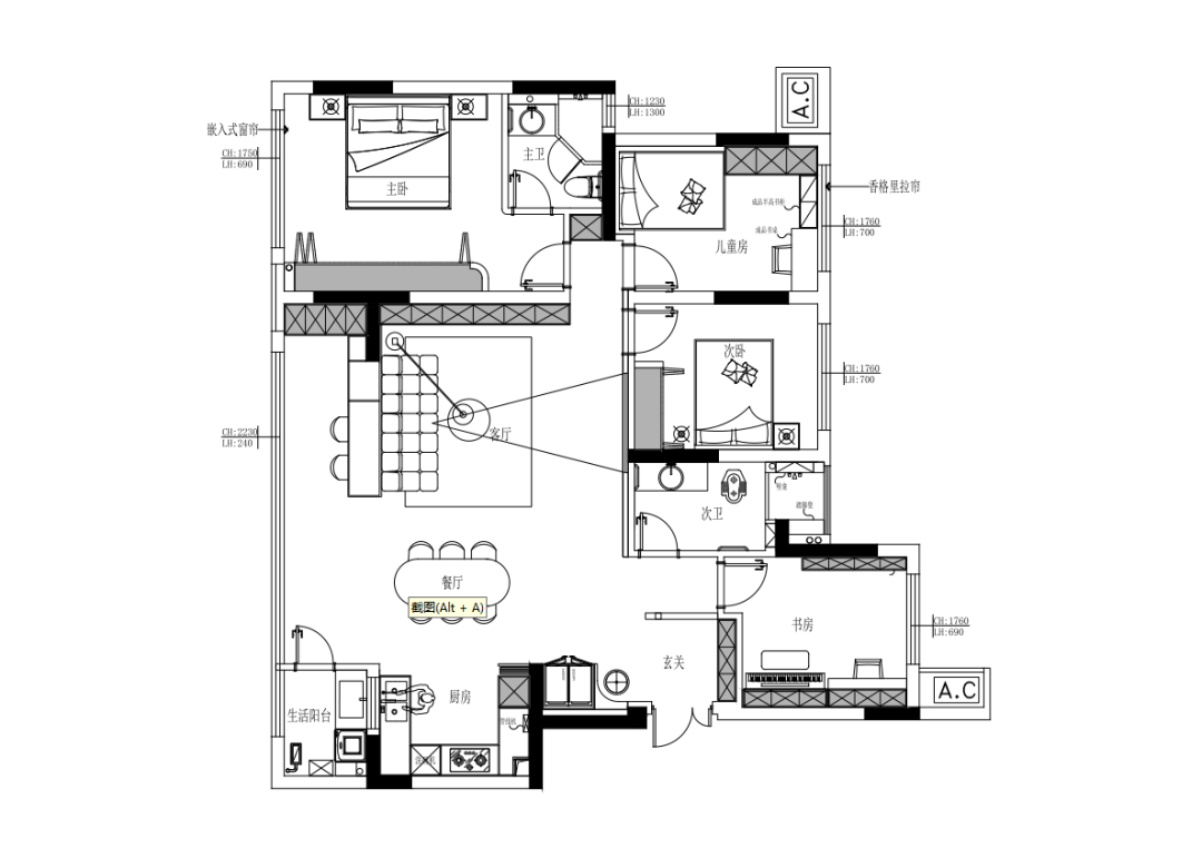 2.希望小朋友的房间能有足够多的活动空间。