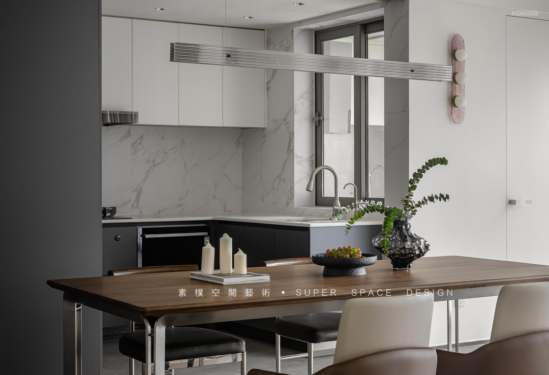 3.厨房做隐形联动滑门、打造出可开放可封闭的厨房。