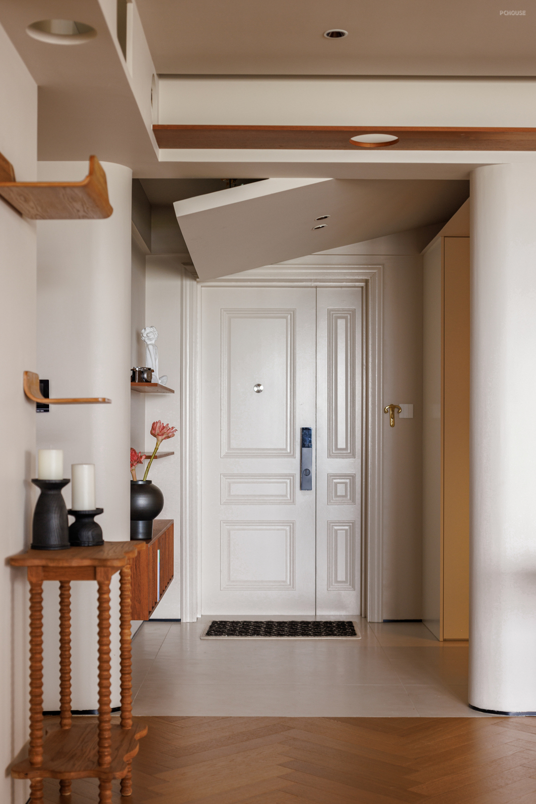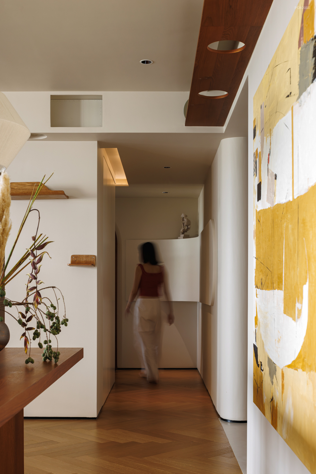 入户大角度斜顶,弧形过渡,尽头影影绰绰的端景,每一处都有可探索的美。