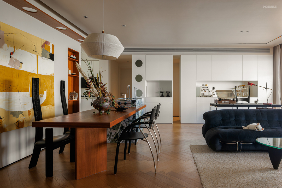 从事家具行业的杨女士和朱先生,对空间的美感和艺术性有自己的衡量准则。功能与审美兼具的家,每个家人都在这空间里找到了自洽。