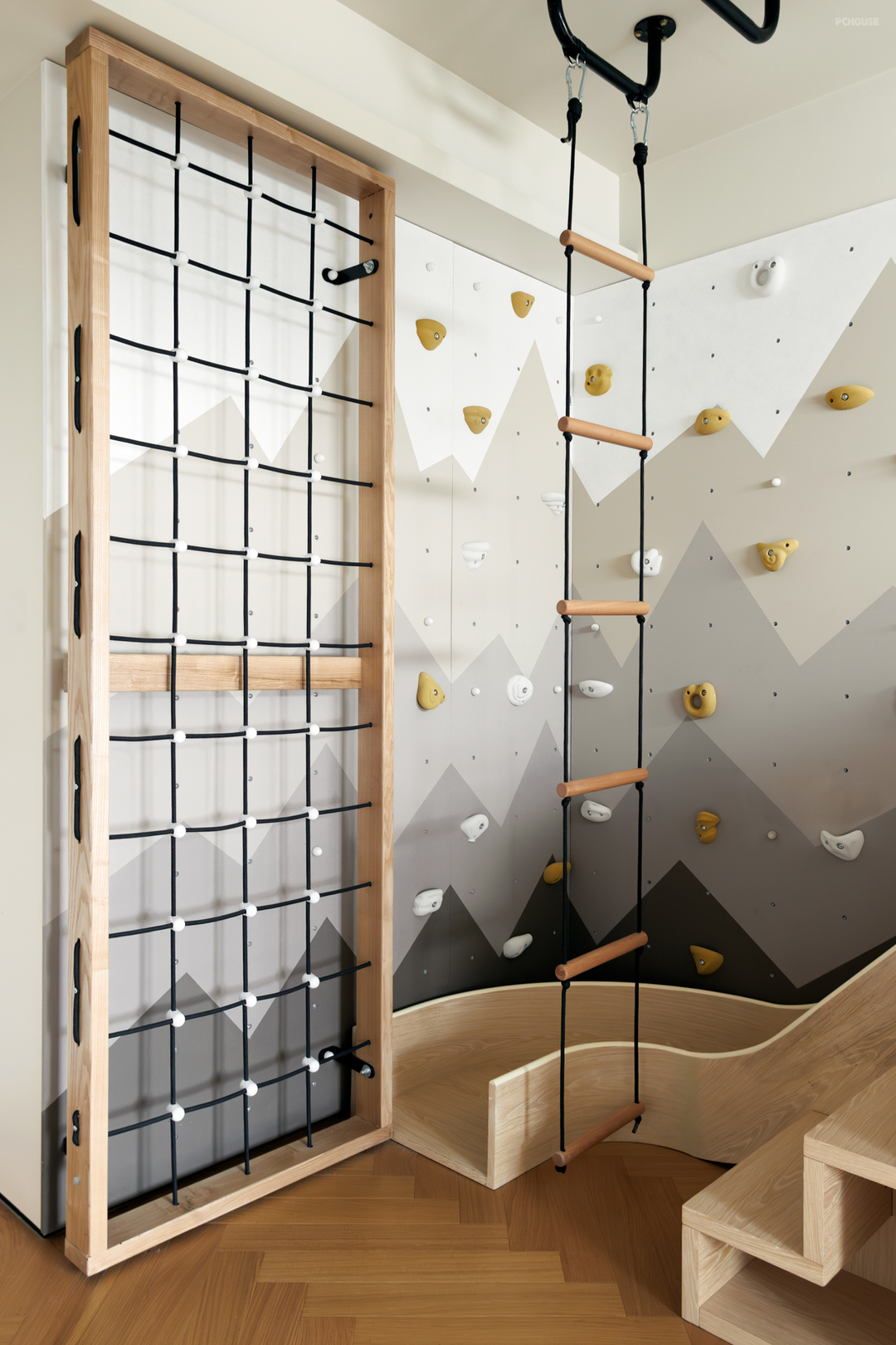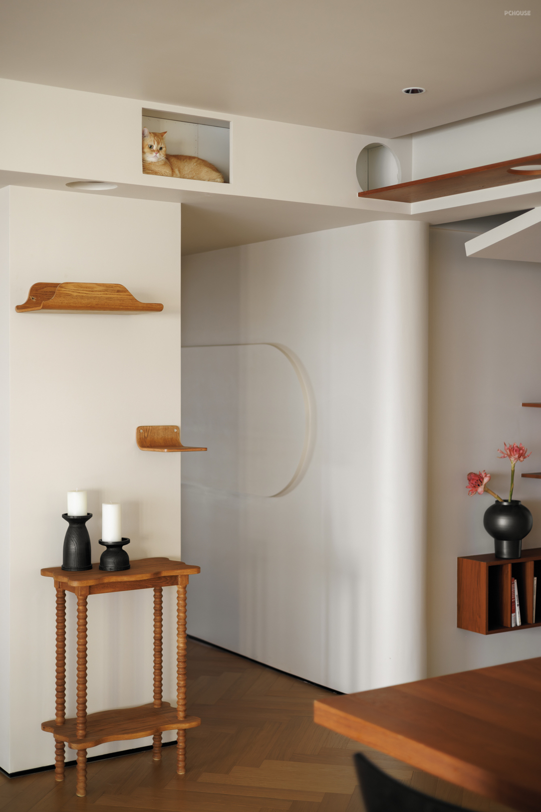 猫猫的天花通道,有完整的上下路线,挖空造型方便观看“动物表演”,跟小猫互动、喂食。