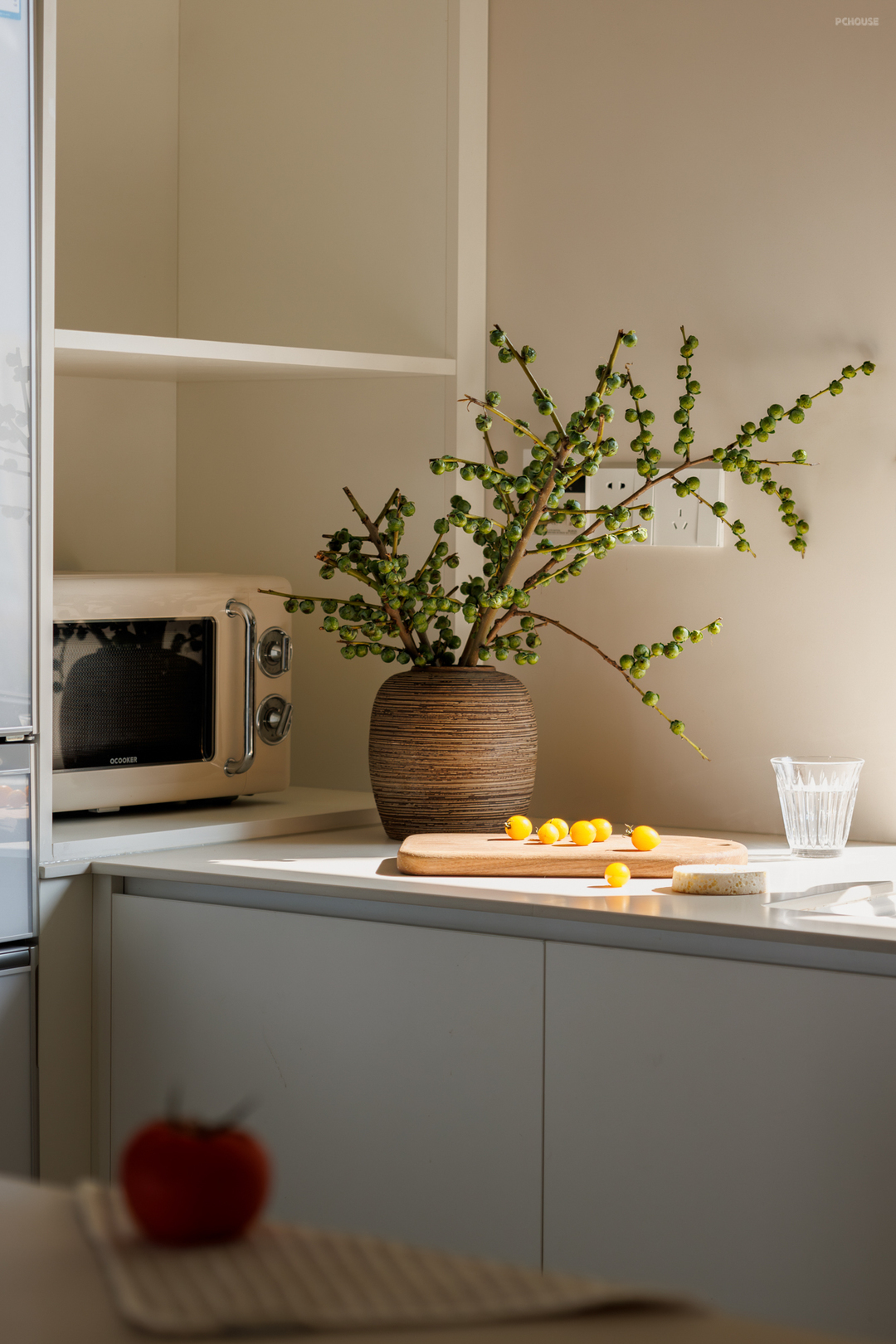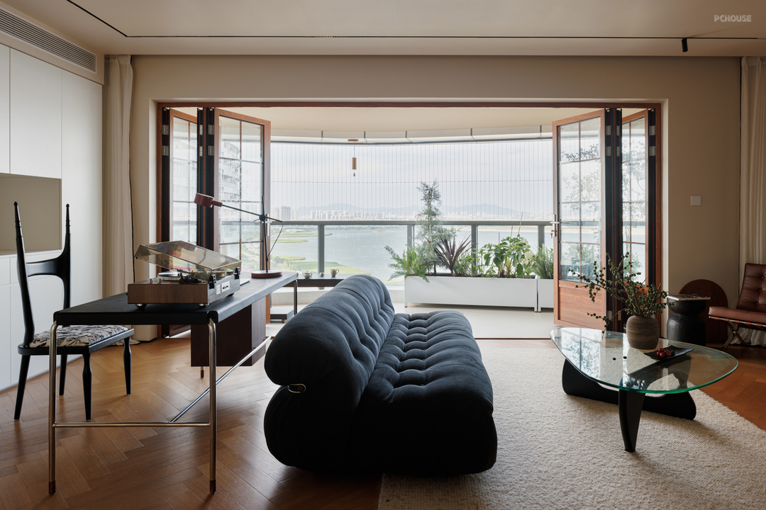 足够大的室内空间,并不需要将阳台封起来。侍弄花草,喝茶吹风,反而获得了不同的意趣。