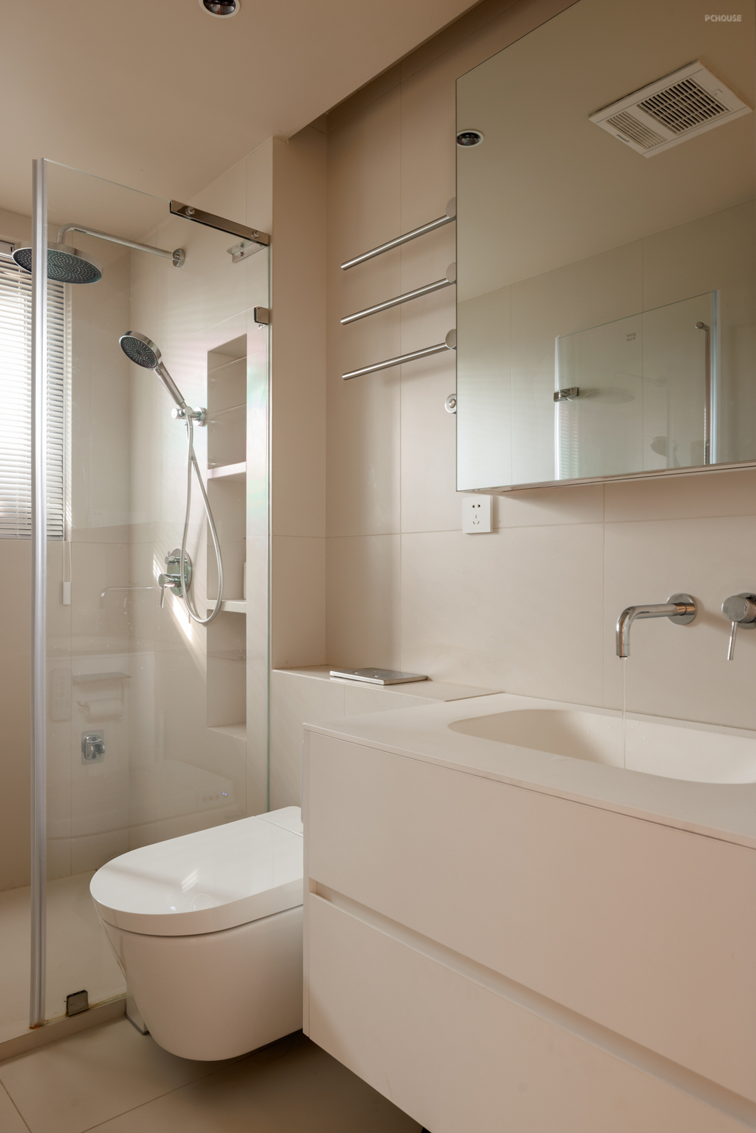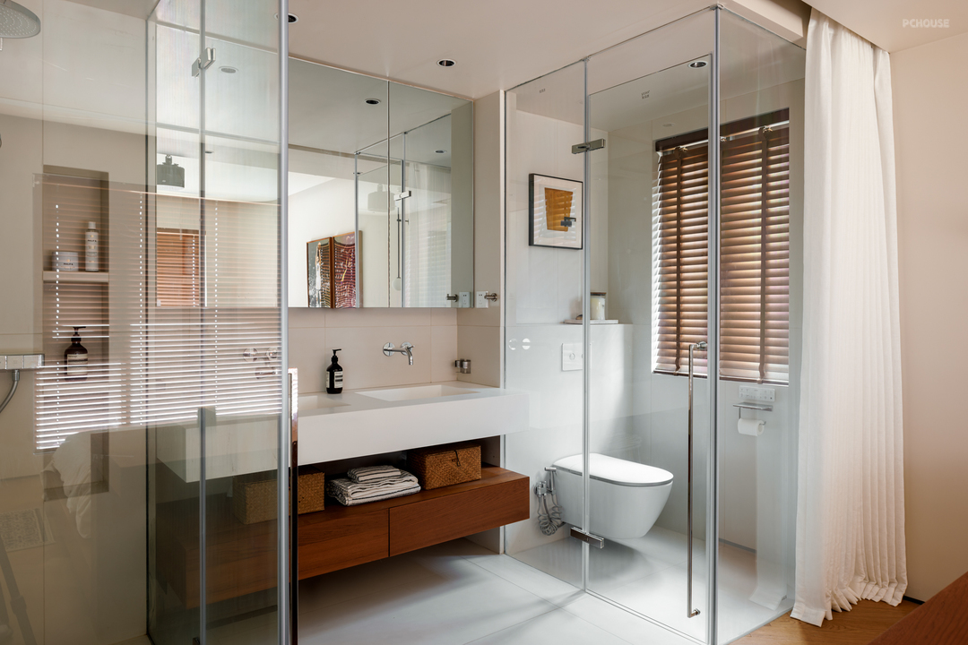 全透明的酒店式三分离卫生间,有客人来访时关上帘布保留私密性。