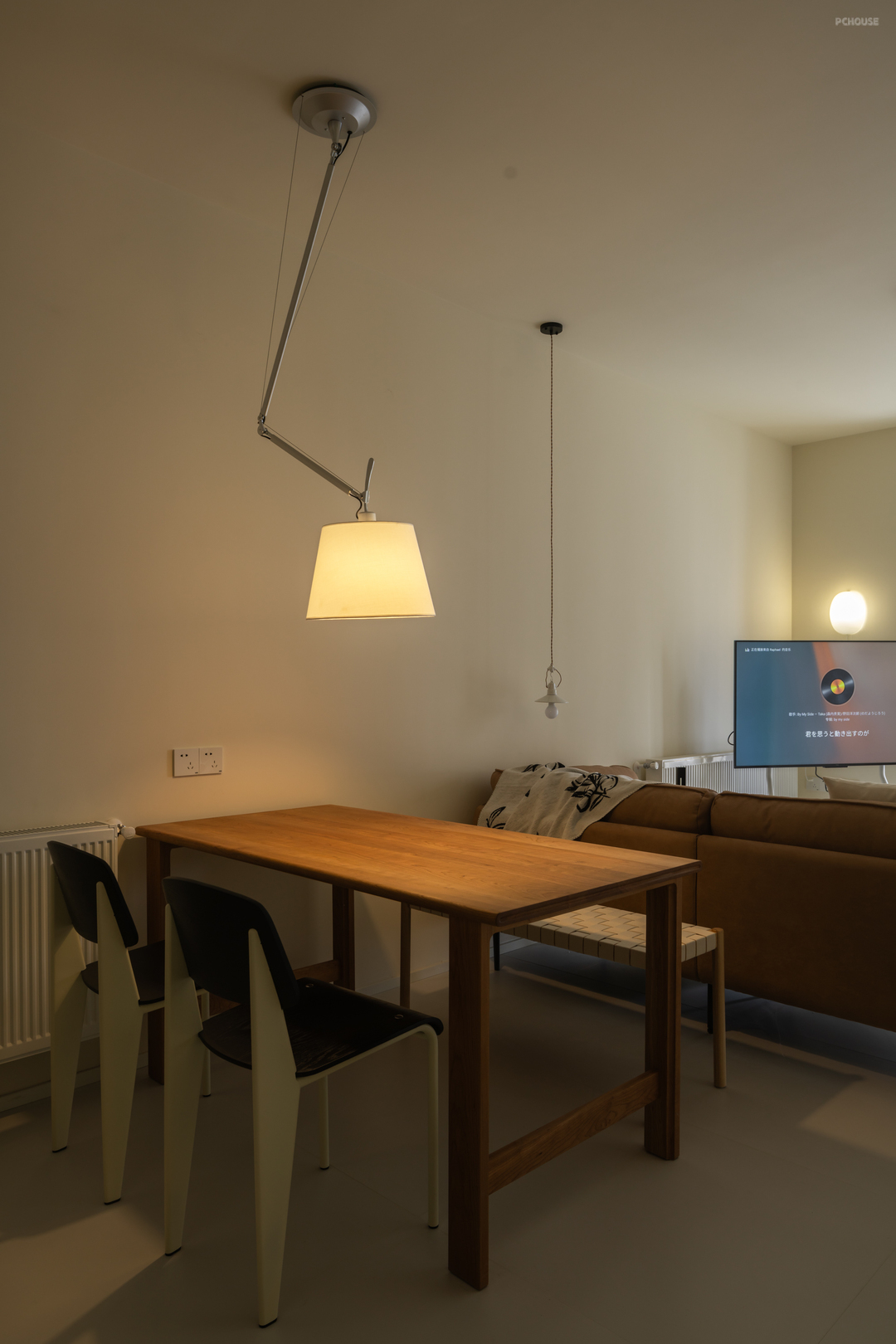一盏Artemide Tolomeo摇臂灯作为餐厅的主要光源。它可以调节距离餐桌的距离和相对位置,十分便利。