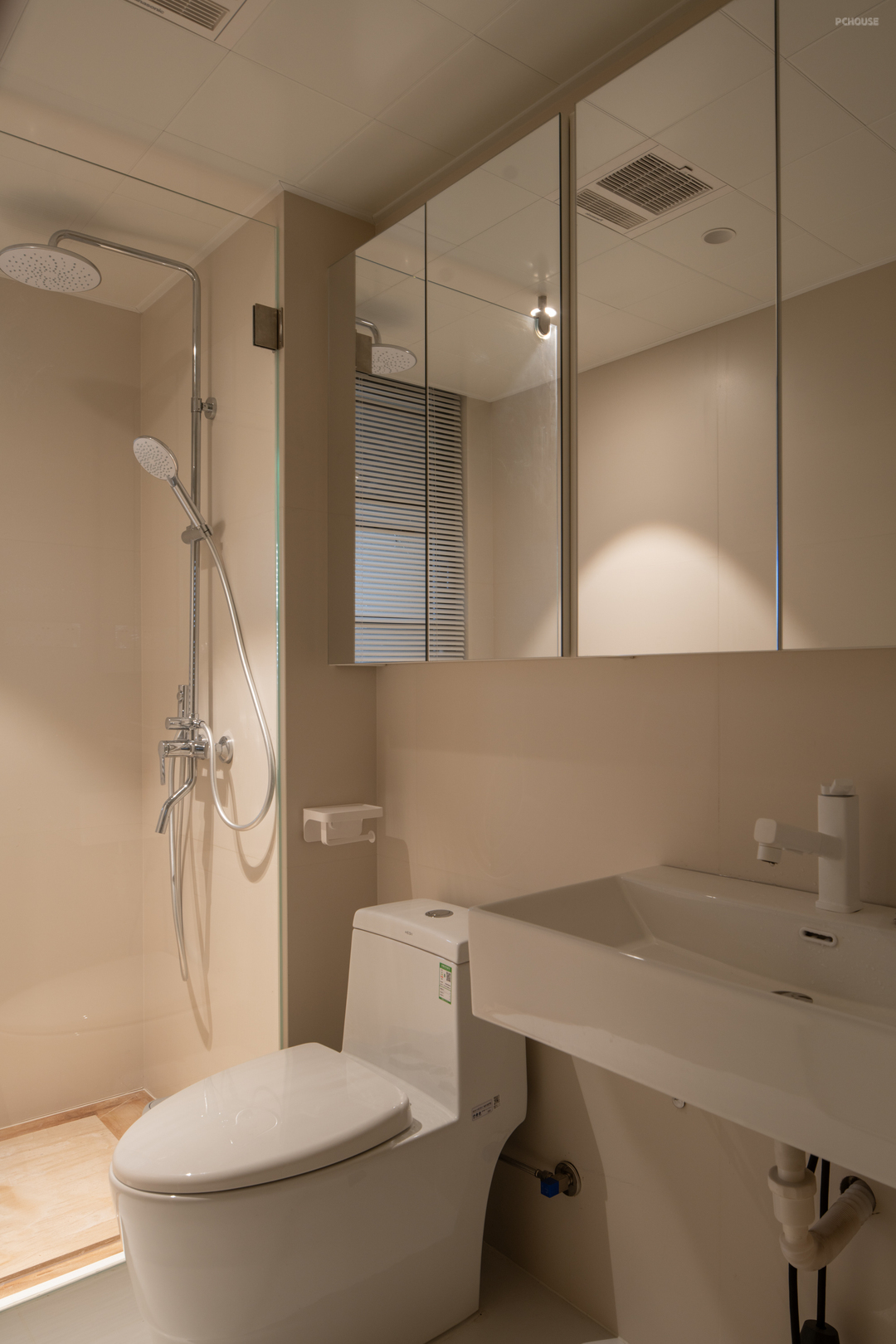 双镜柜不仅增加了主卫的收纳面积,也有放大空间的视觉感受的效果。