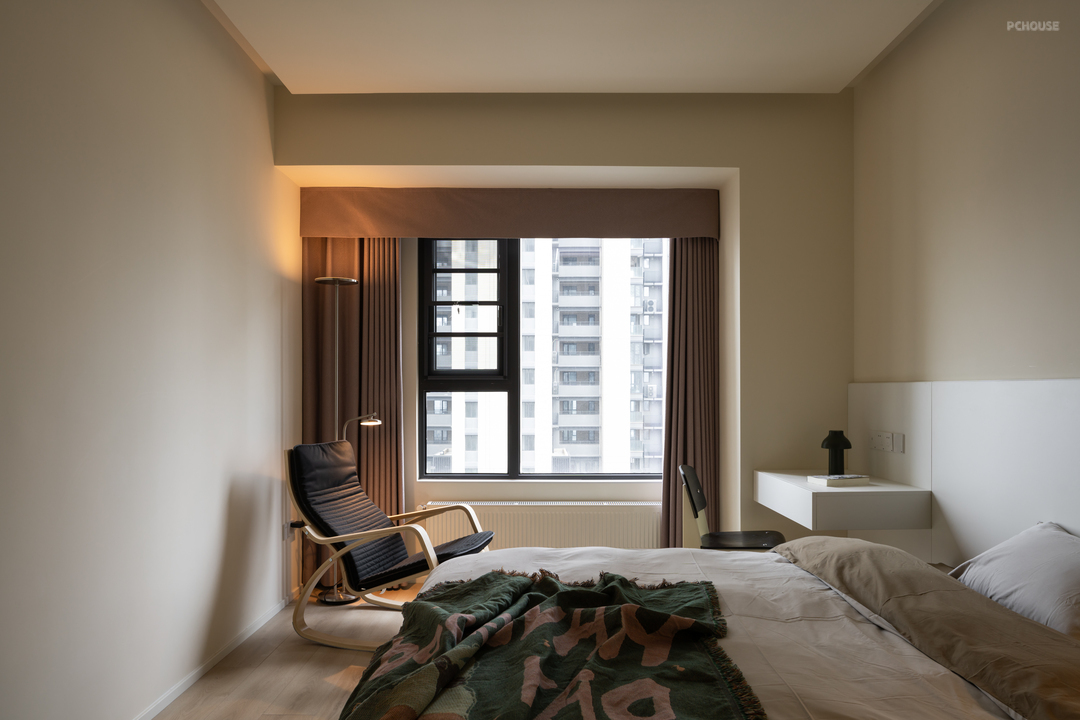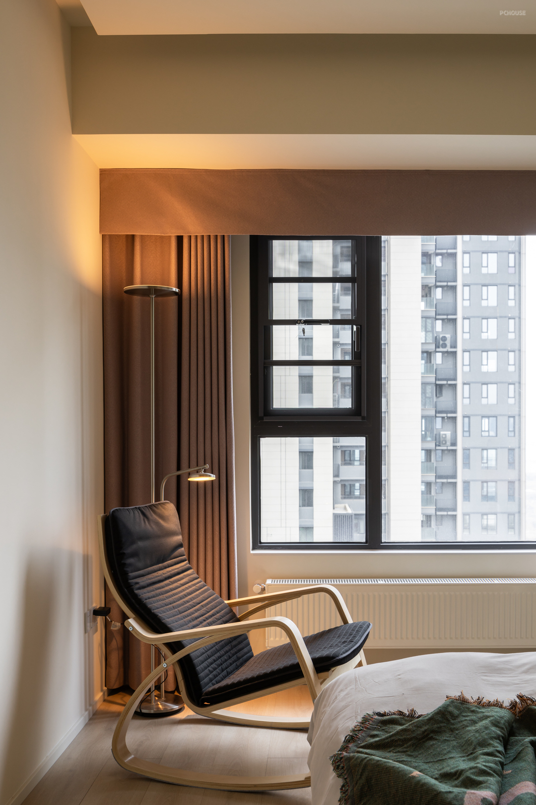 主卧的角落是屋主的另一个自留地。深夜,屋主便可在这个落地灯照亮的静谧角落,翻翻书、酝酿睡意。