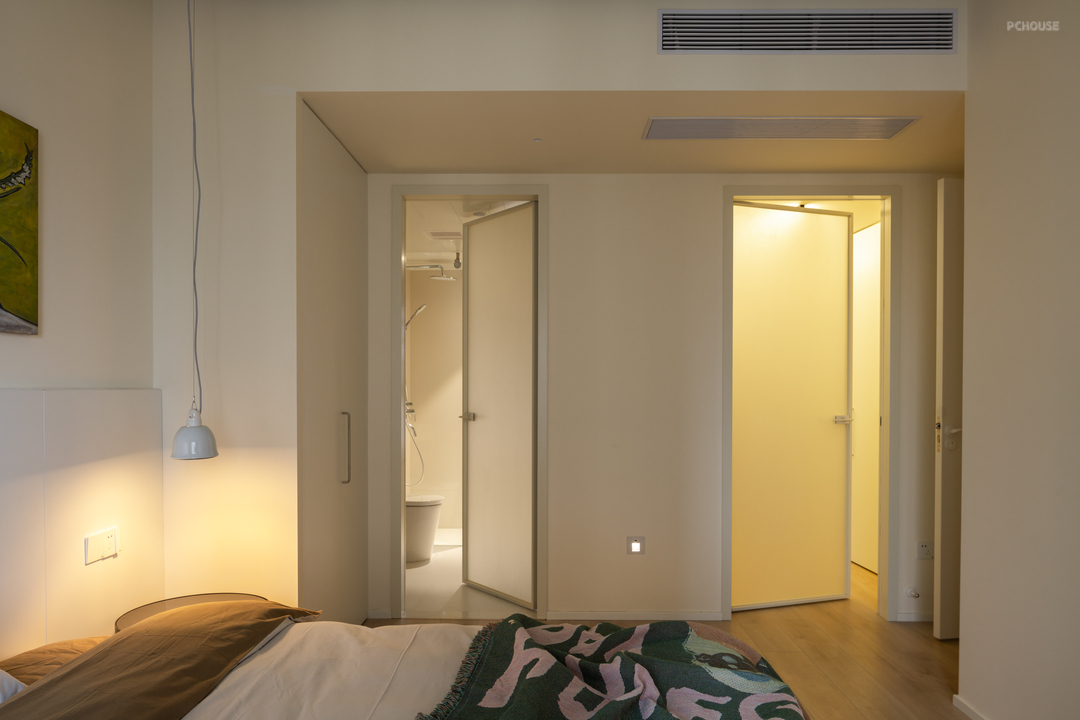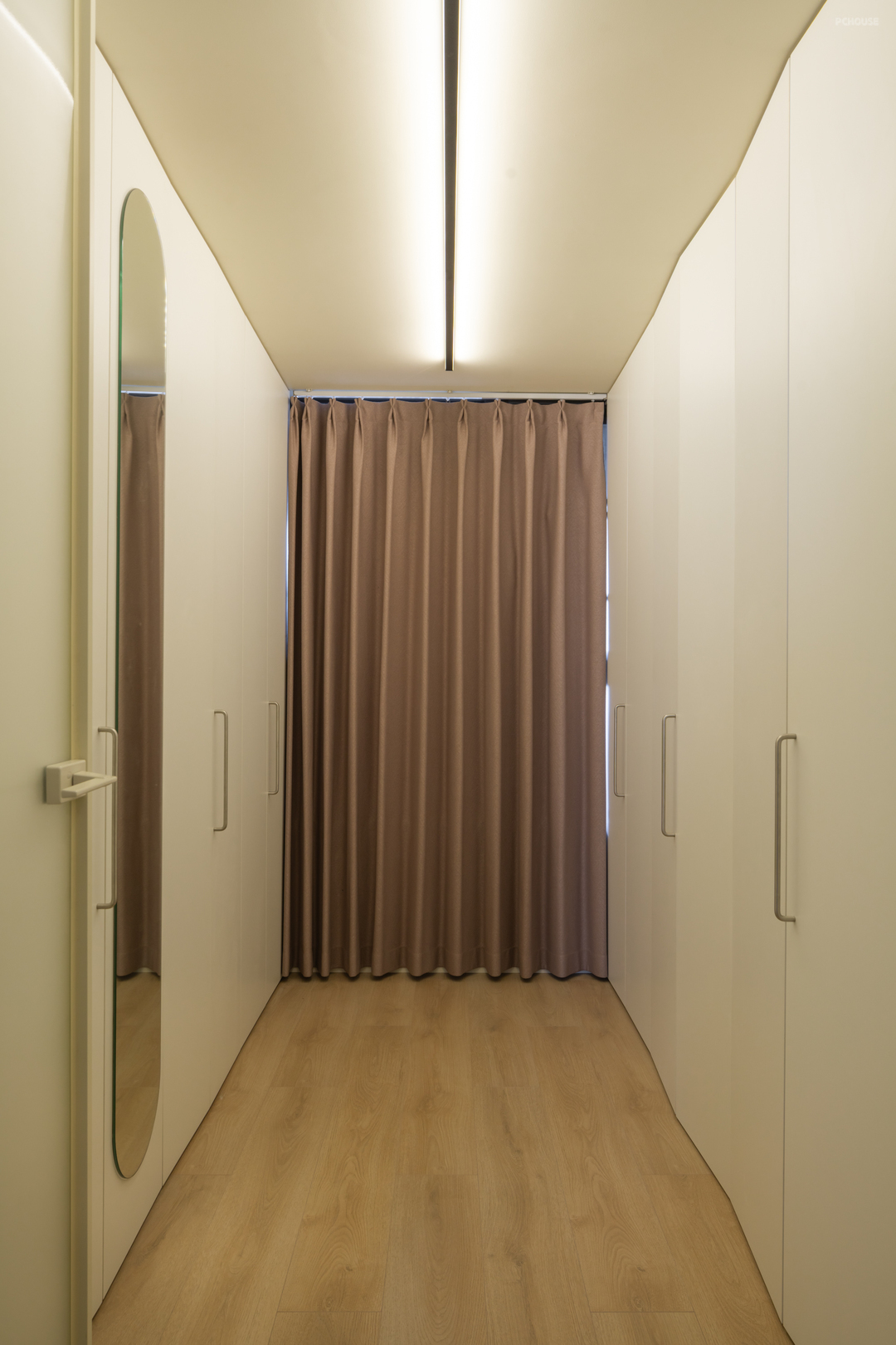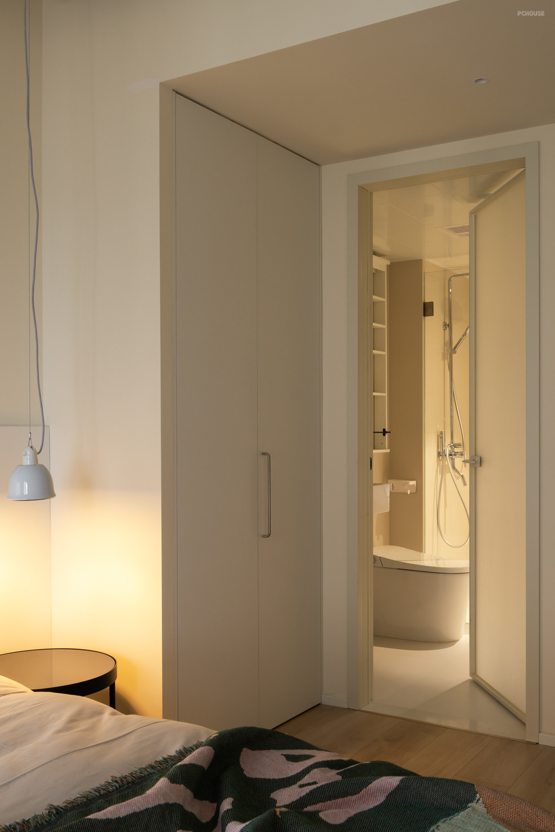 衣柜与主卫的相对位置形成了方便的动线,因此收纳毛巾、睡衣以及一些卫浴用品十分合适。
