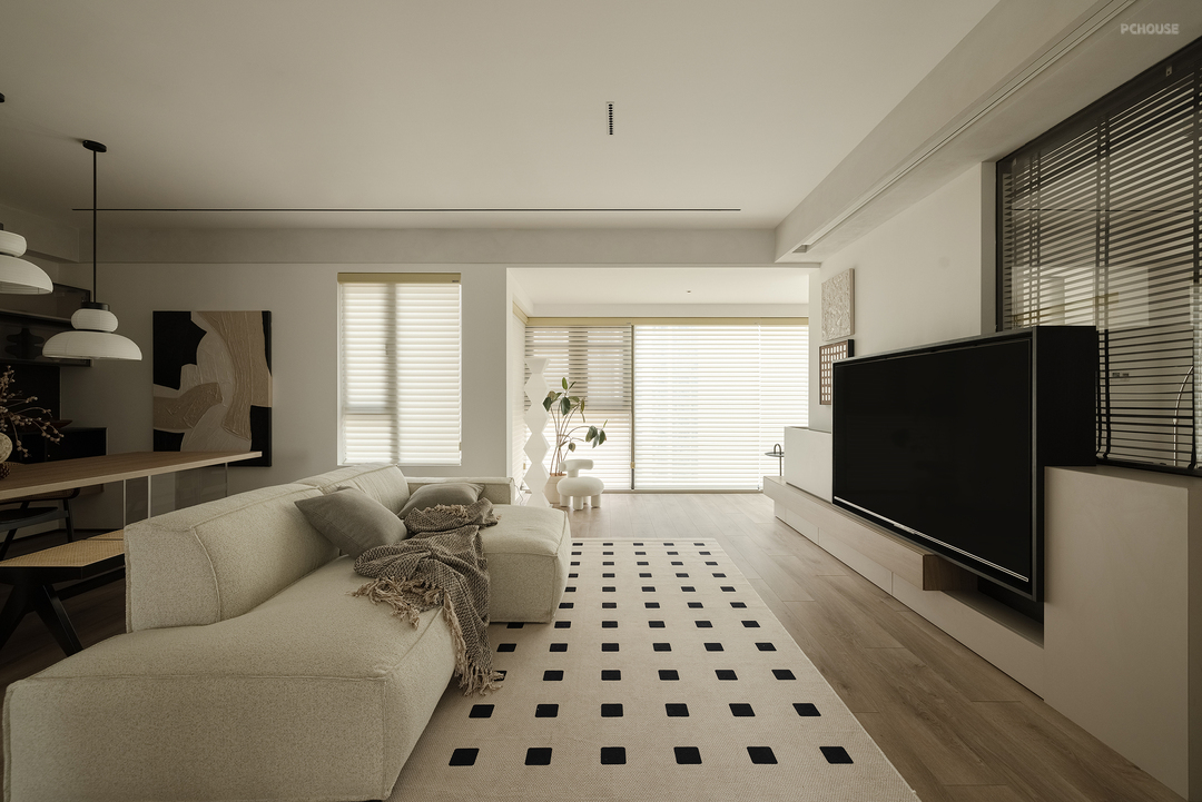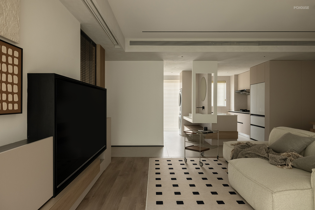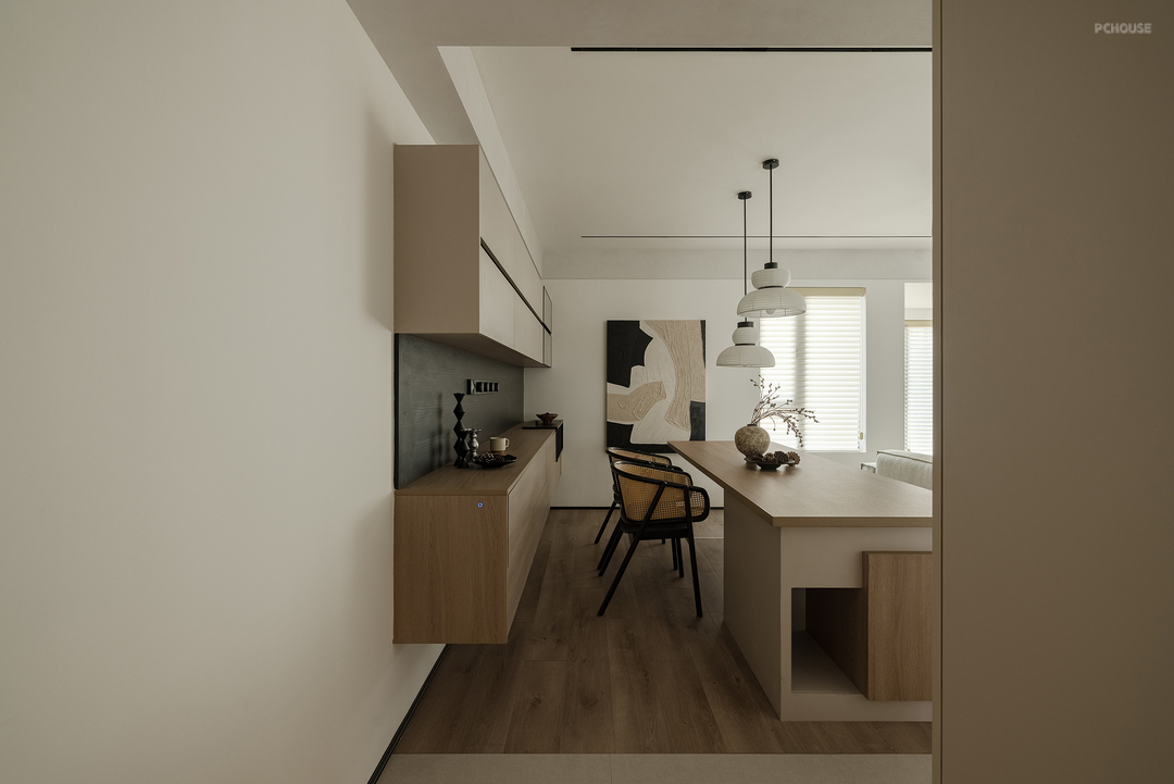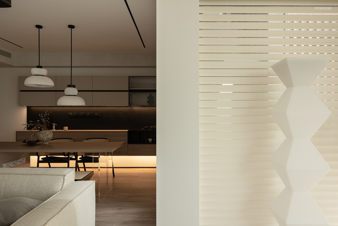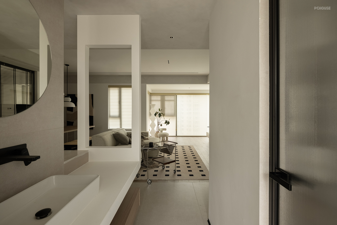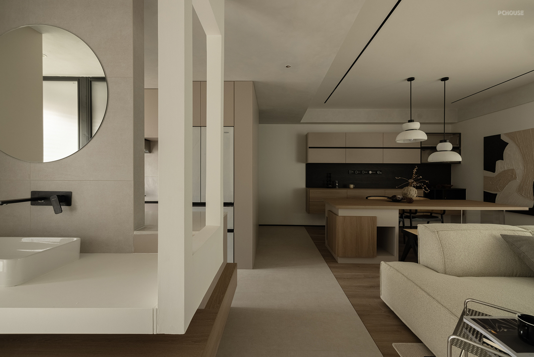 模糊边界+场域串连:打造多重机能复合式公区 在空间的使用维度上,导入分界模糊且更具包容性的开放平面。视觉上彼此相连,构建出连续且流动的空间感,同时又能够保障各自区域的相对私密性。空间内这种全新互动模式,能给生活带来更多趣味与踏实。