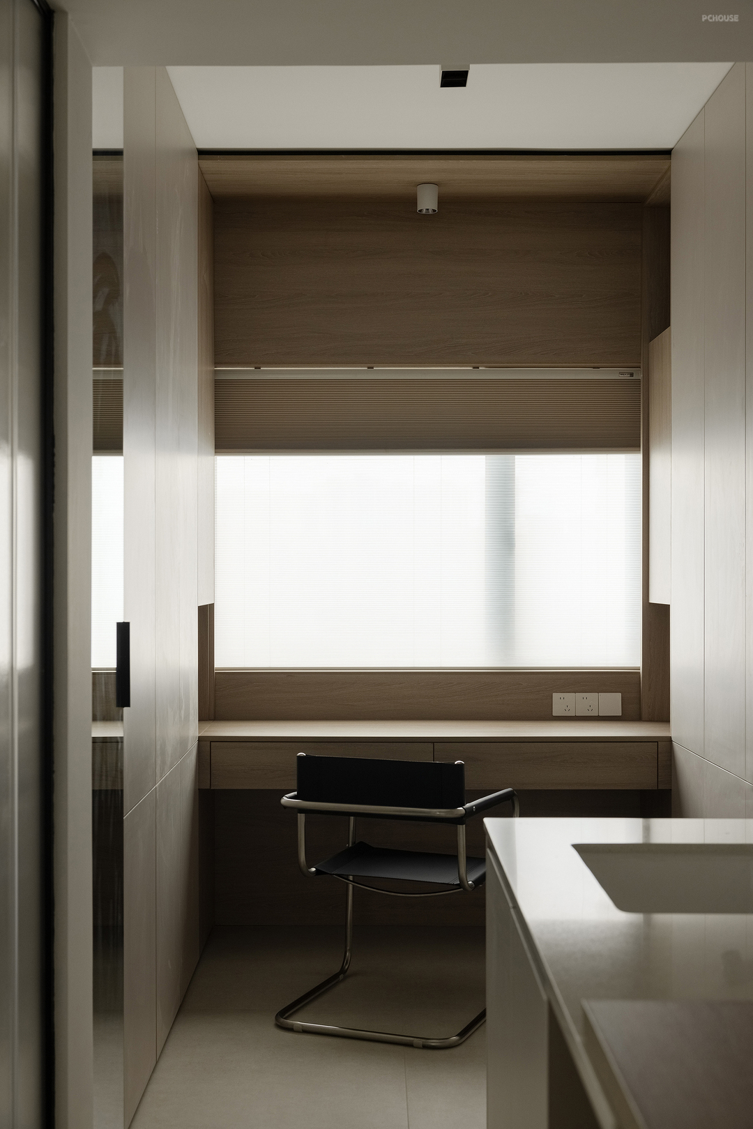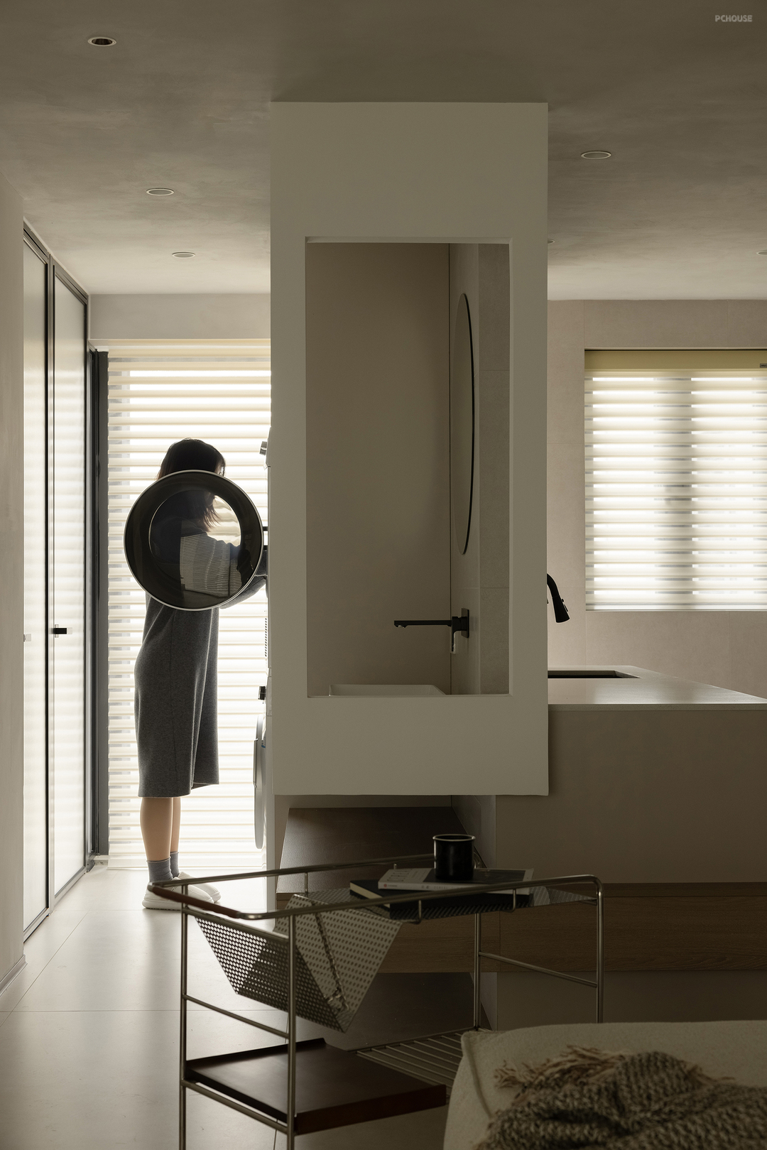 这一私密空间由温暖的材料和质朴的色调所构建,呈现出自然的氛围。在空间感的营造上,空间背景、盥洗柜、梳妆台,在美学功能和个体特征之间找到了一种平衡的联系,衍生出简约、精致、宁静。