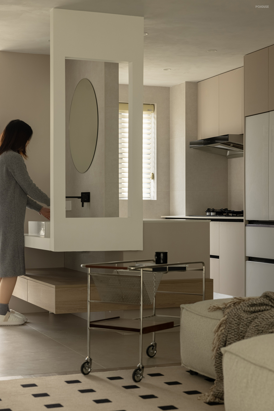 以洄游动线为核心的空间重组,不仅提供了更丰富便利的生活方式,也解决了公卫和厨房光线差,厨卫面积局促等问题。