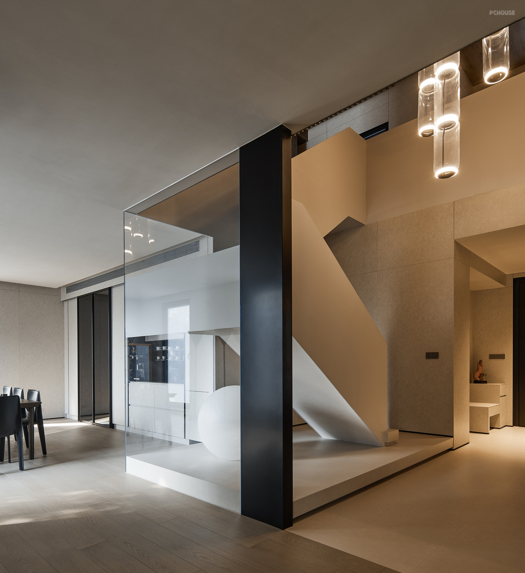 空间结构设计上,设计师构建了人与人之间、人与物之间、室内与室外之间的互动关系。我们在这个家里很容易呆的住,很喜欢它充满了自然光的舒适感。家里的材质非常有质感,无论是家具还是装饰品,都显得非常精致和考究。