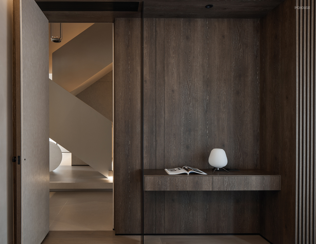进入玄关,让人顿时感到舒适与宁静。走道比原来的要宽阔,挑空的层高设计,使得整个空间显得格外高大,给人一种豁然开朗的感觉。入户旁的换鞋坐凳、抽屉、鞋柜、外套区、穿衣镜等,每一个角落都充满了创意和设计的巧思,让人不禁想要驻足欣赏。对于追求品质生活的人来说,这里无疑是一个值得品味和欣赏的空间。