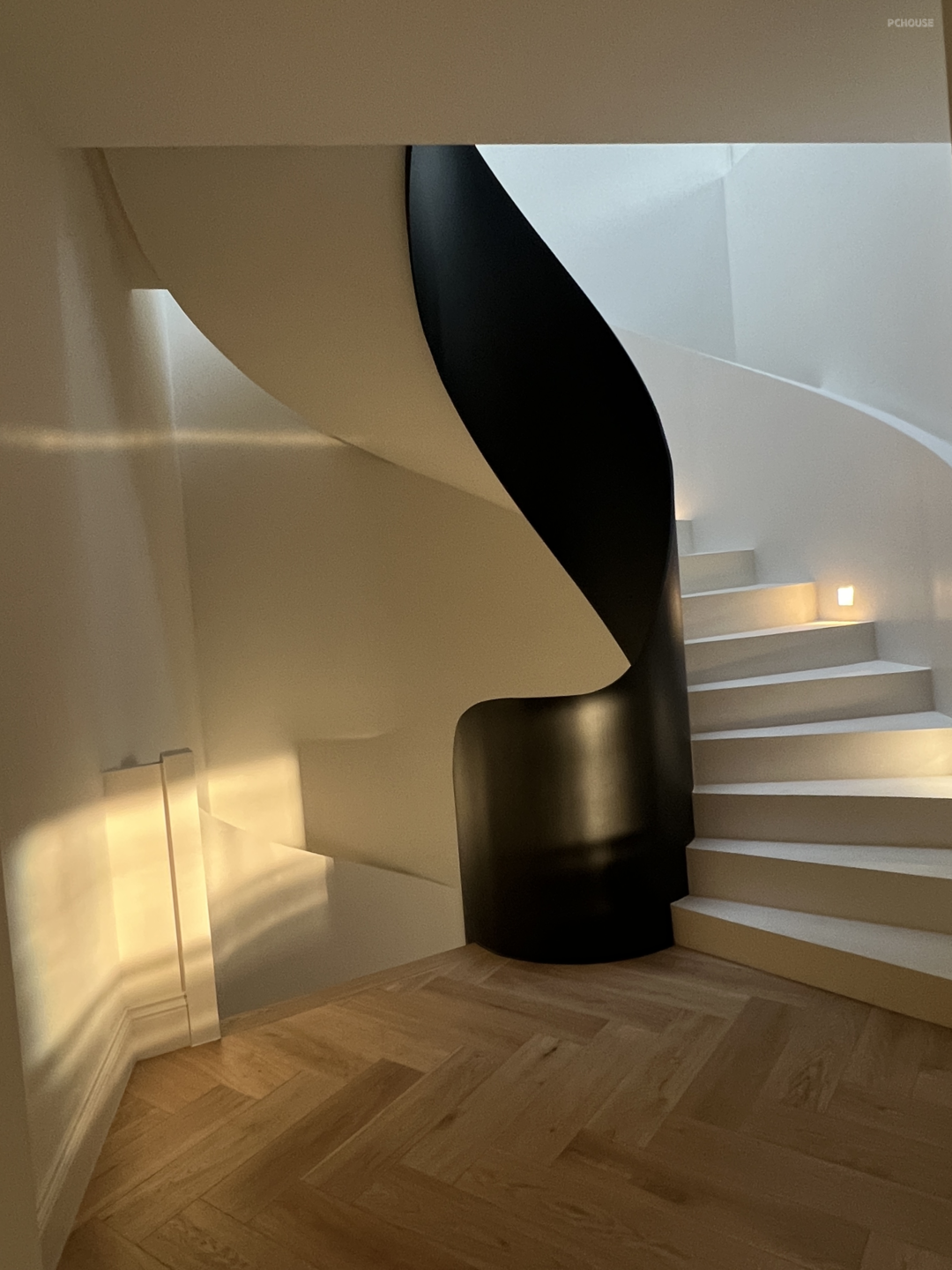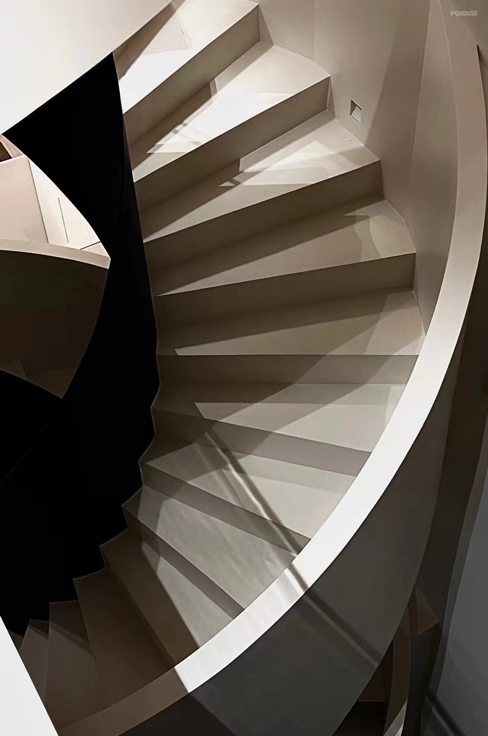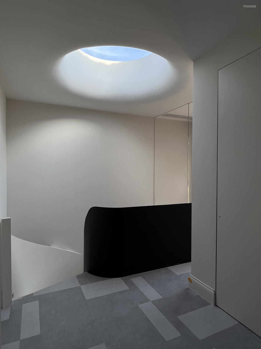 前言: 本案结构经过大刀阔斧的改造,功能全面,材质丰富。拥有水泥浇筑的微水泥踏步,钢板扶手的旋转楼梯,从顶楼垂直采光至负二层的圆形天窗,所有刻意的结构皆服务于功能。顶楼的套房腔调十足,是一个融合多种元素的艺术之家。