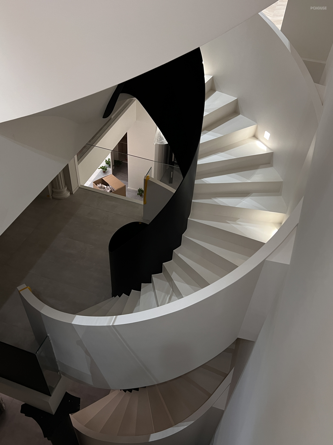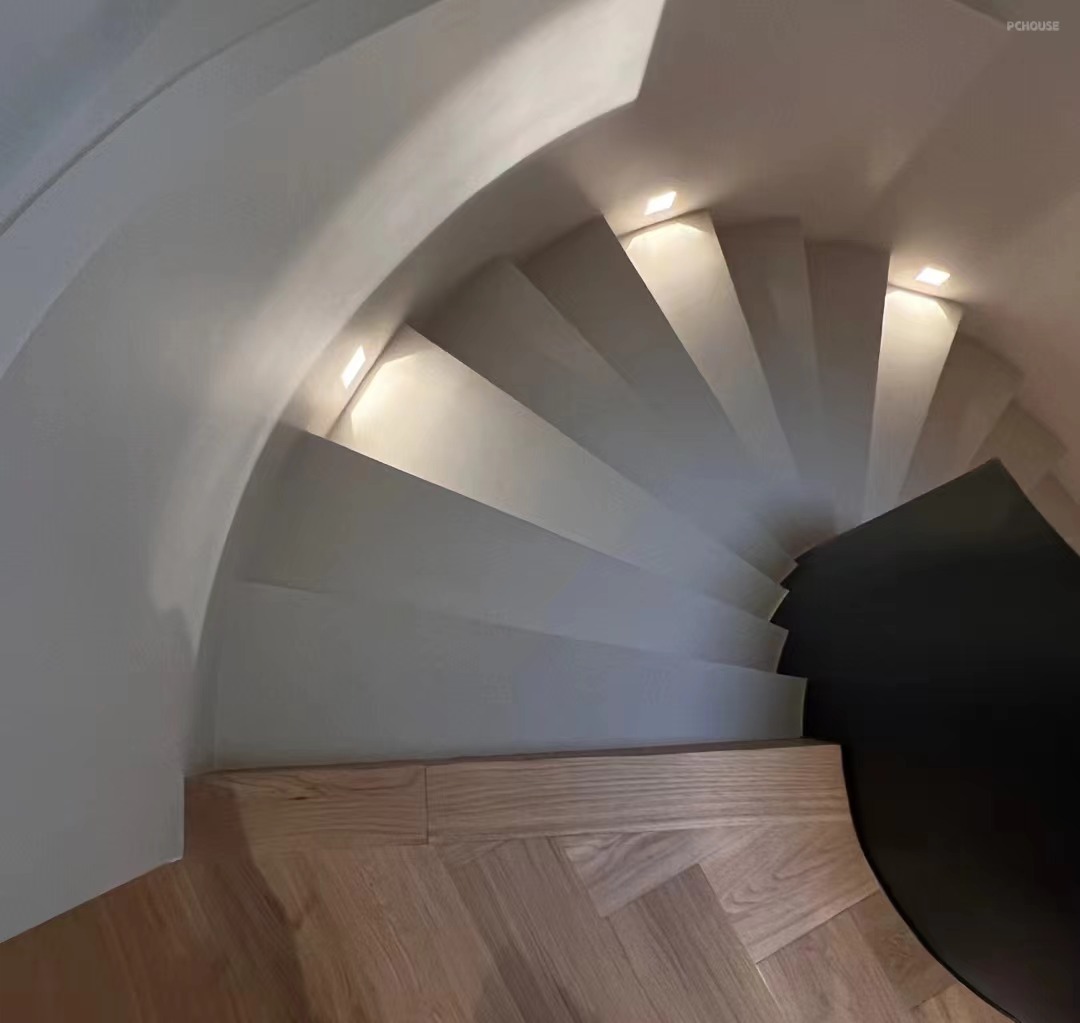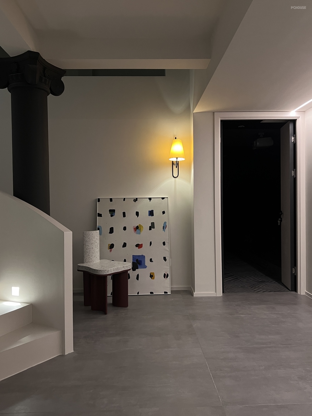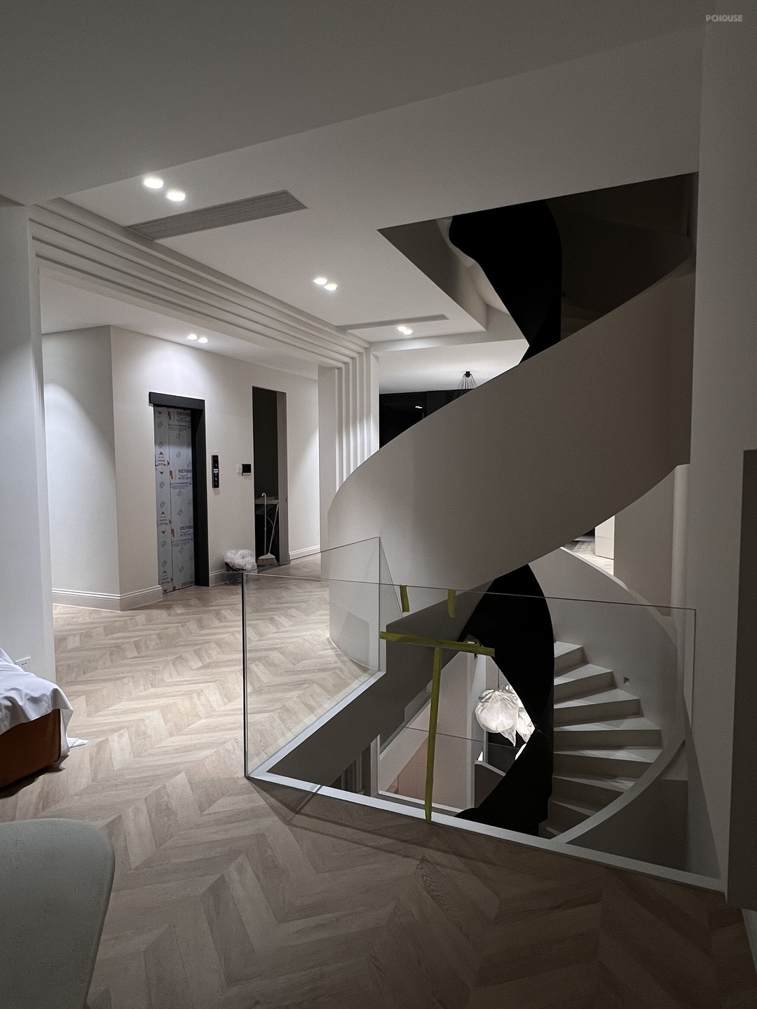 前言: 本案结构经过大刀阔斧的改造,功能全面,材质丰富。拥有水泥浇筑的微水泥踏步,钢板扶手的旋转楼梯,从顶楼垂直采光至负二层的圆形天窗,所有刻意的结构皆服务于功能。顶楼的套房腔调十足,是一个融合多种元素的艺术之家。