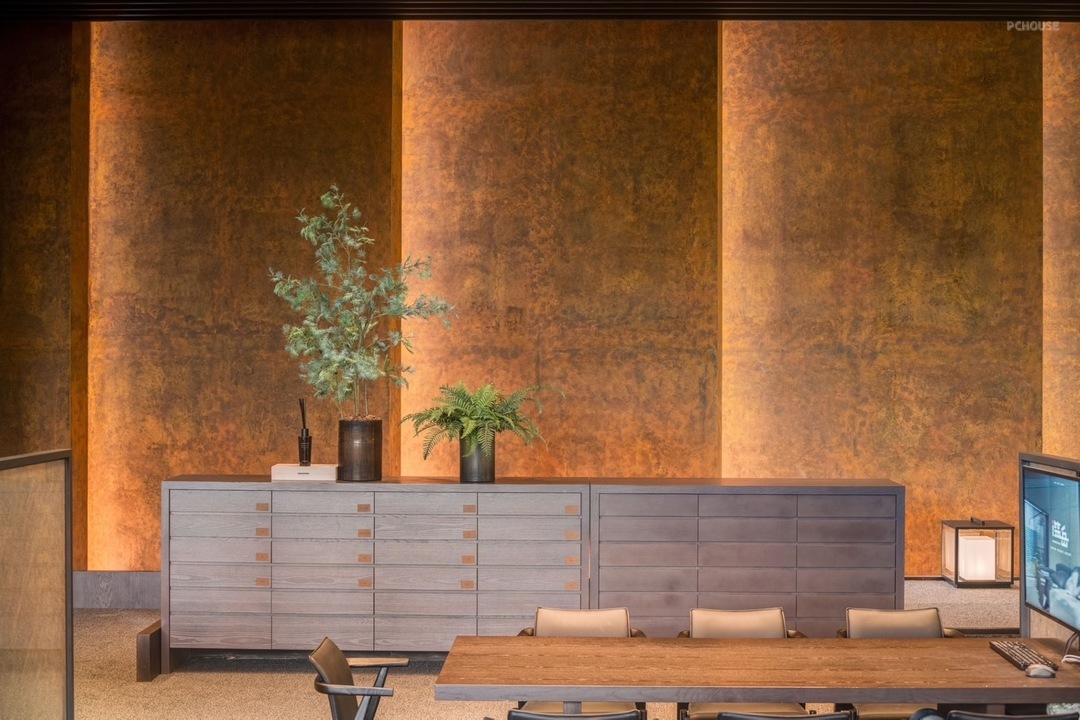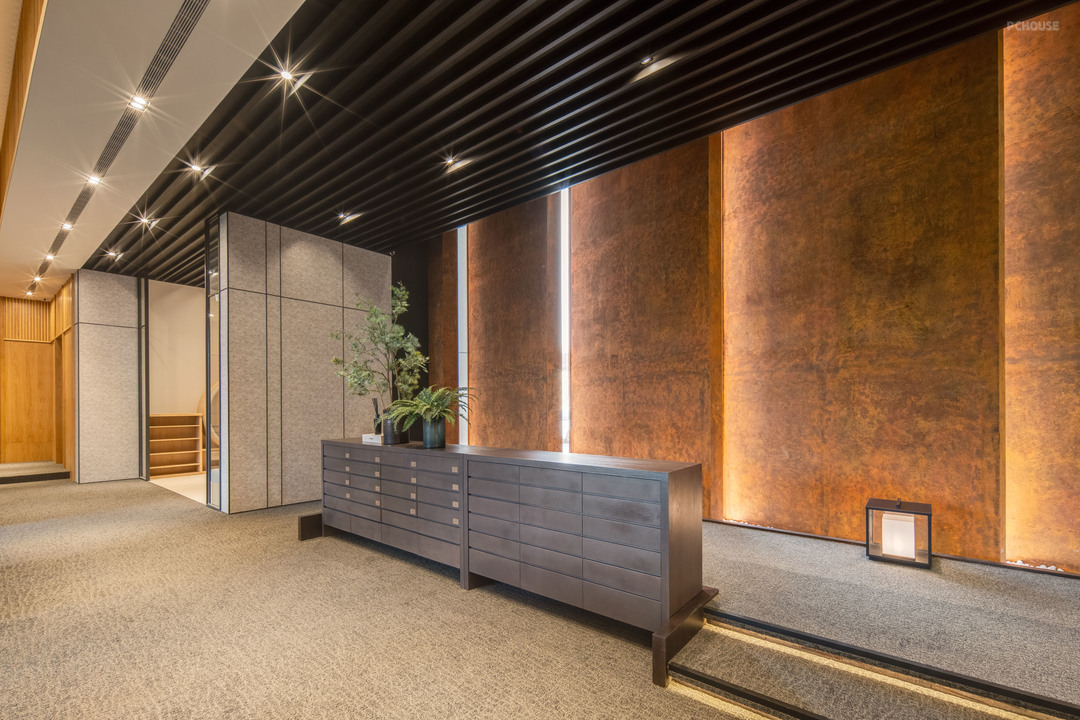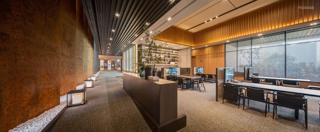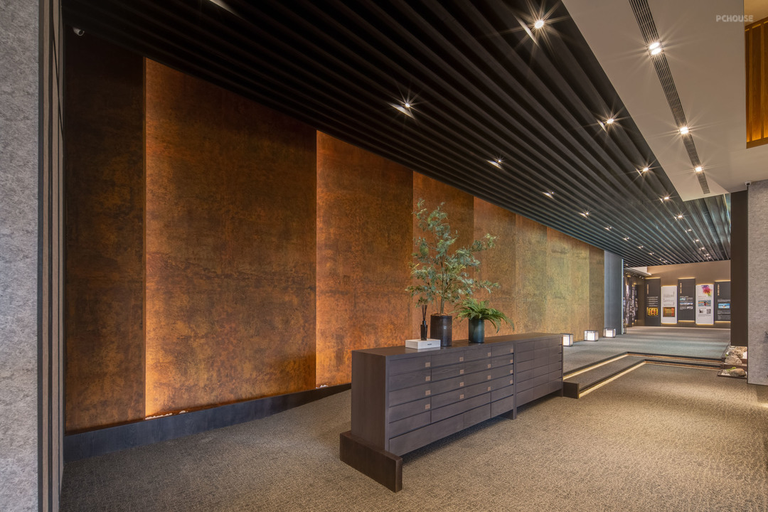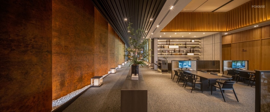 前言: 追求建築的永續性,並將建築融入自然,藉此讓空間展現生生不息的質感調性,設計團隊以巧思將戶外的景色引入到室內,讓空間渲染自然氛圍,並透過材質的運用,讓空間視覺展現斑駁的獨特面貌,營造日系人文的細膩風采,結合框景視角,依序藉由水、建築皮層、室內空間,將視覺層次感從裡到外延伸,展現空間虛實的完美結合,增添展示中心的特色韻味。