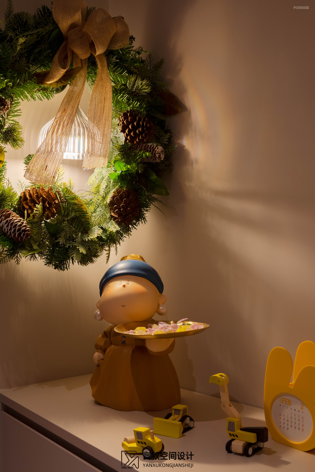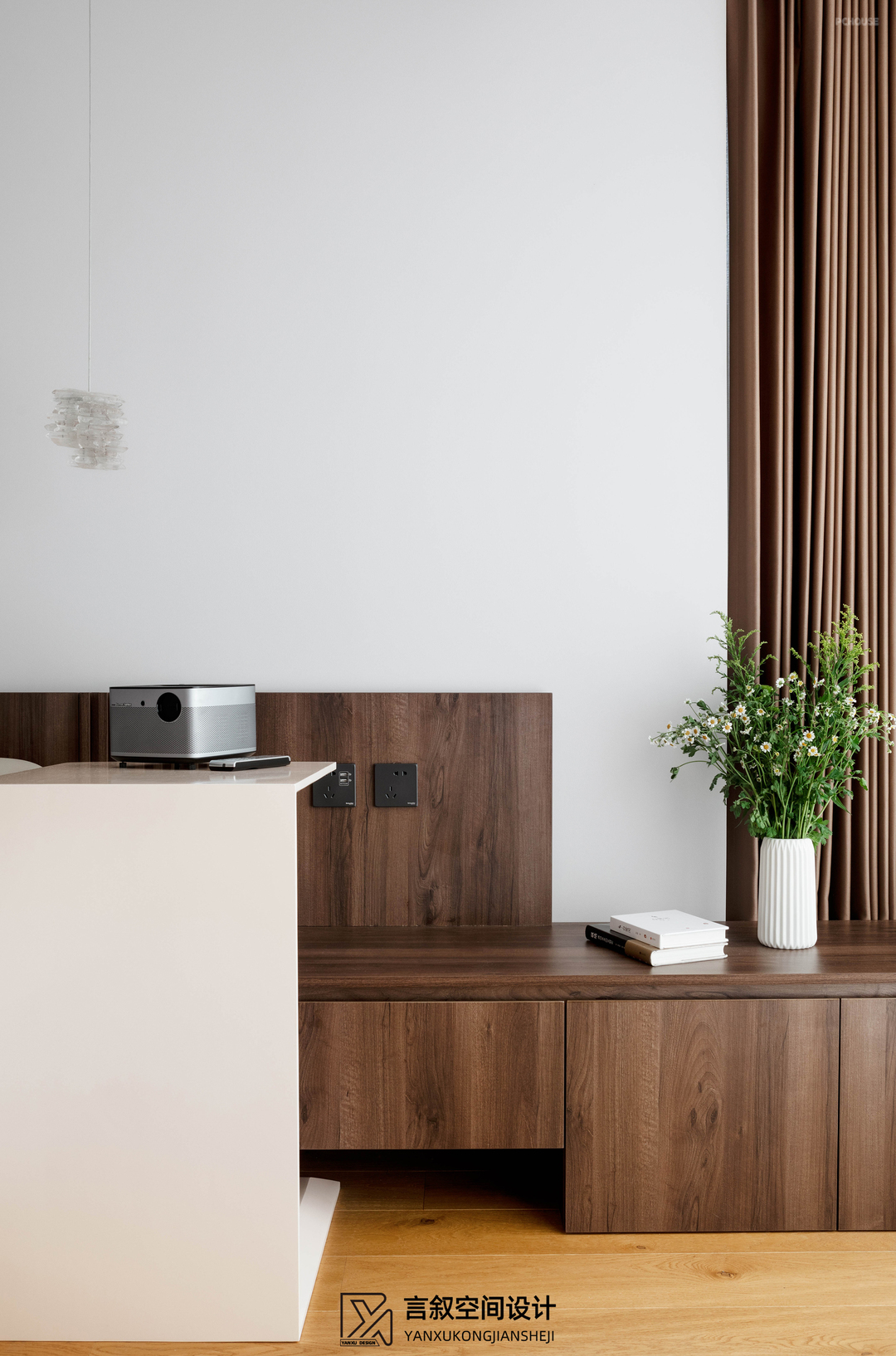 根据屋主的生活所需,我们并没有预留电视柜位置,而是改用隐藏式投影幕布满足一家人的观影需求,留出更多的自由空间可以让孩子在家的活动空间。
