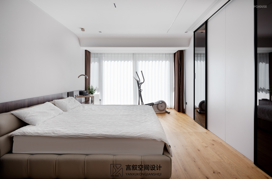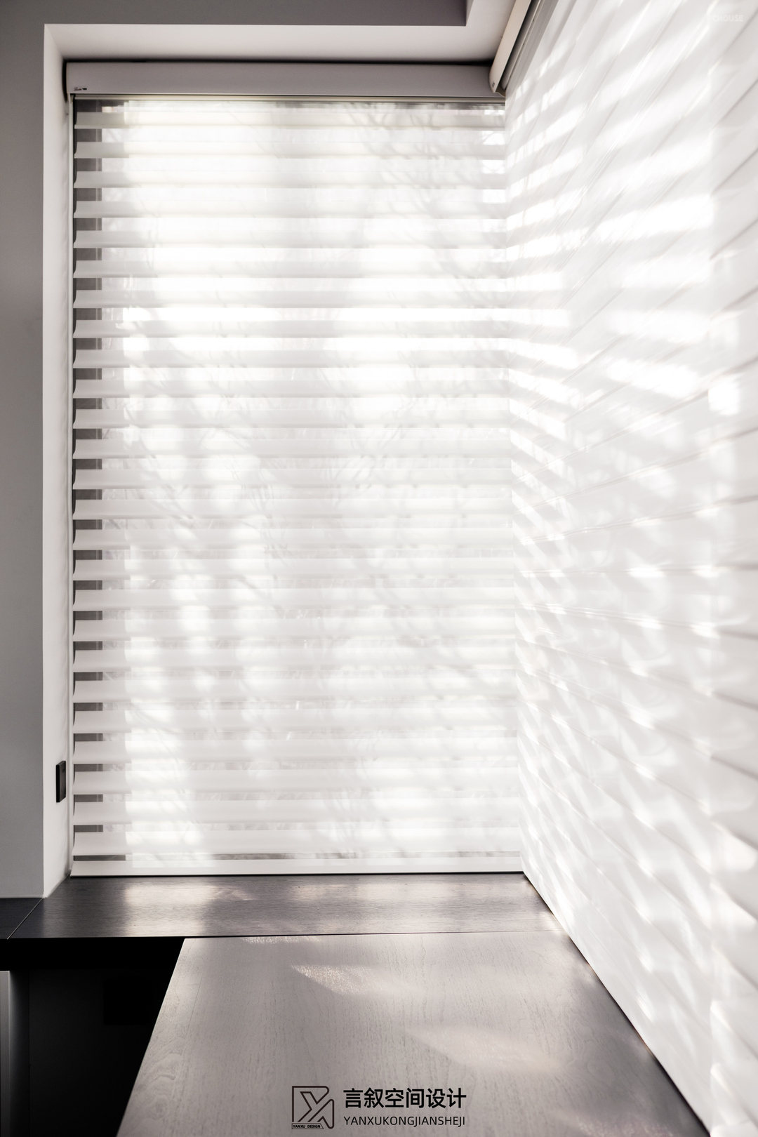改用香格里拉帘做遮光,既能展现柔美舒适的不同光影变化,也省去了纱帘两侧堆叠的空间占用。