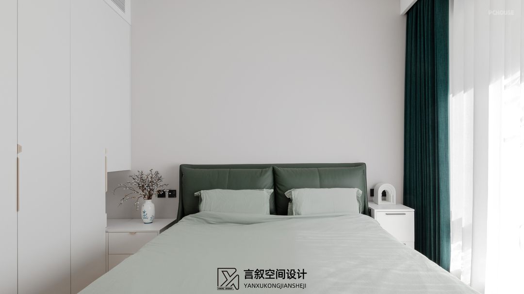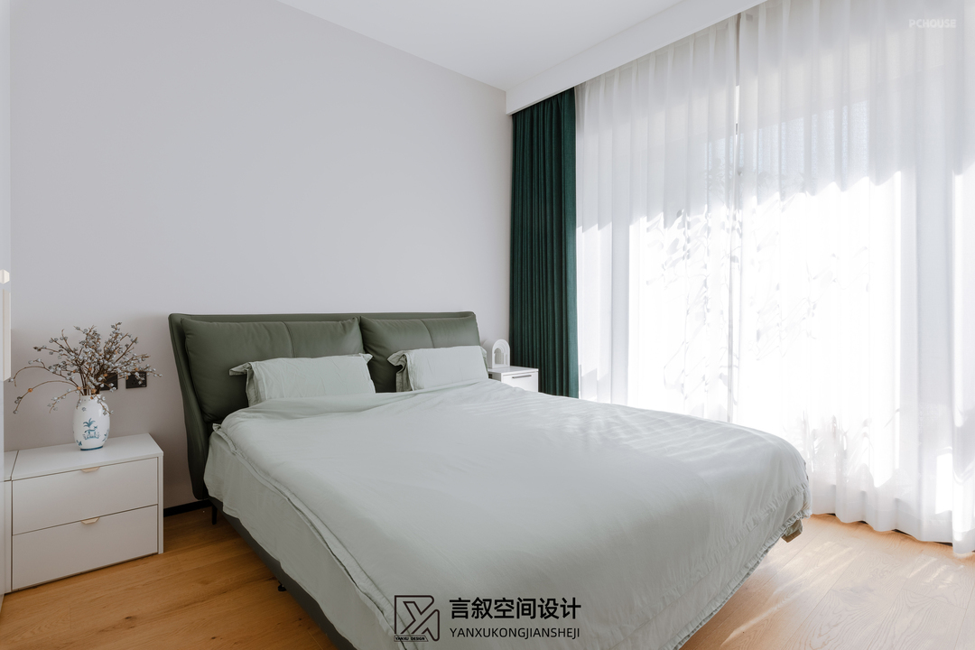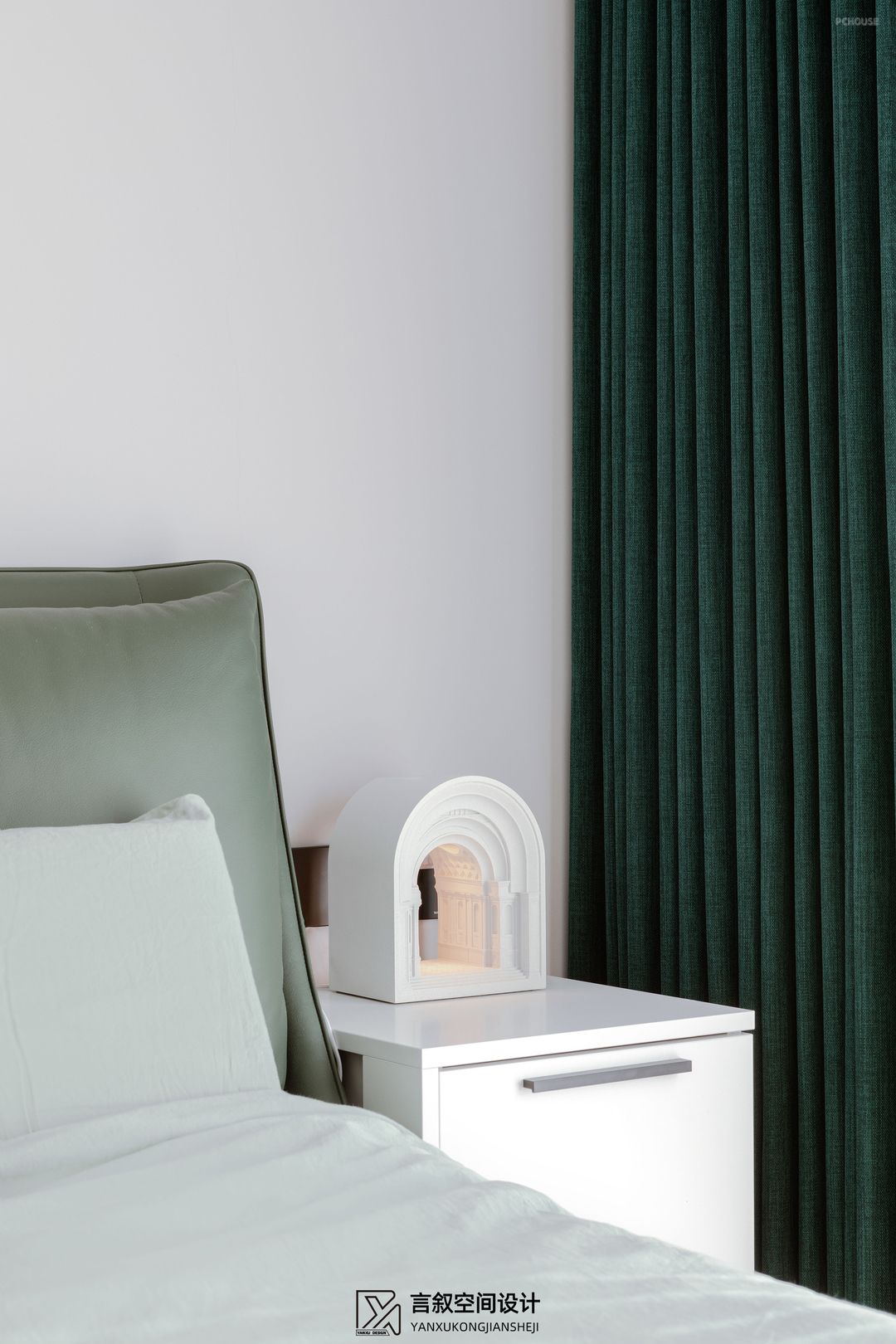 次卧没有做书房,留给了屋主的父母居住,以老人房为出发点设计,配色上更注重优雅内敛,装饰上更注重简约舒适。