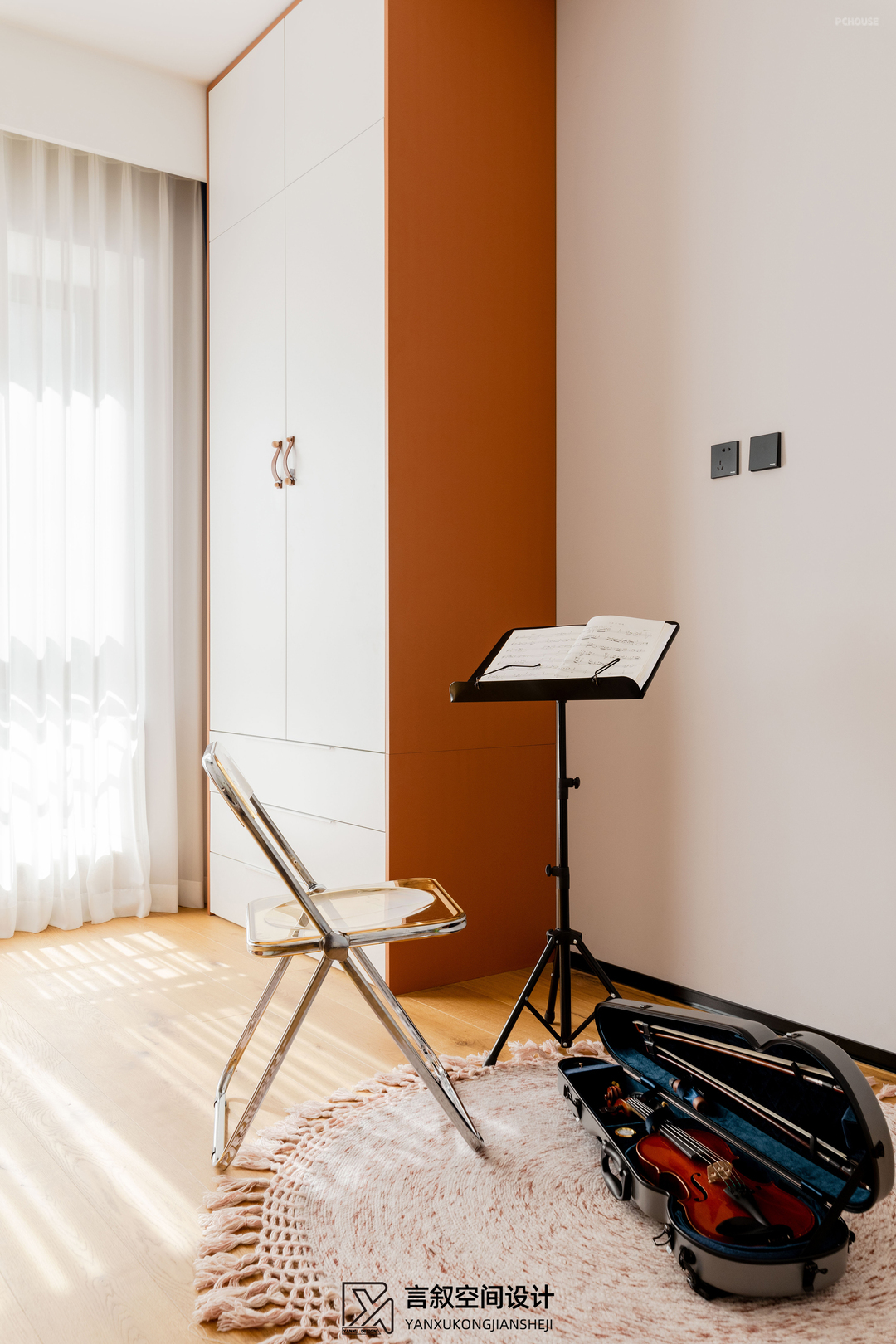 屋主对独立书房的需求不大,而是更希望这个房间可以承载更多可能,比如孩子的琴室或学习区,同时还能临时提供留宿需求。
