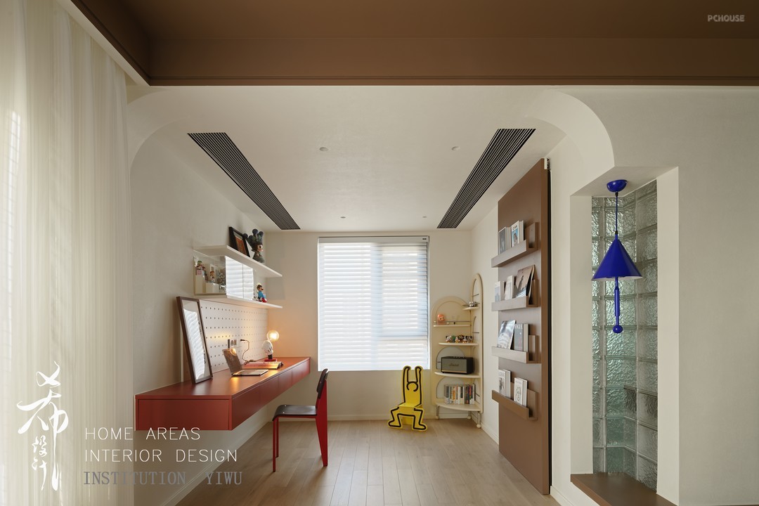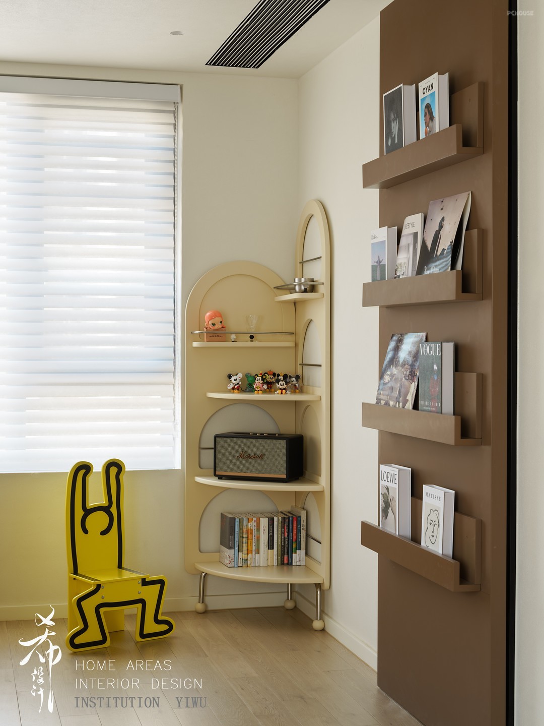 倒角形态结合空间深度定格了书房图景,一边对应阅读氛围,一边收整置物载体,让中区“空境”予人最大的自由。