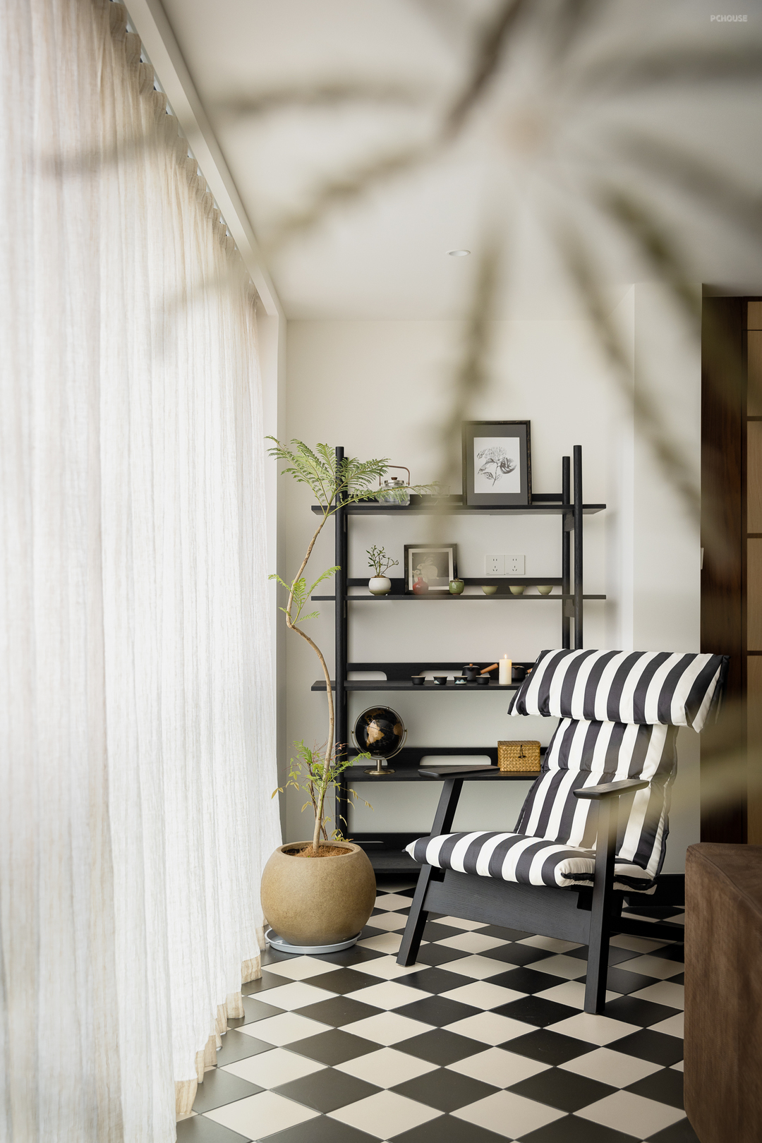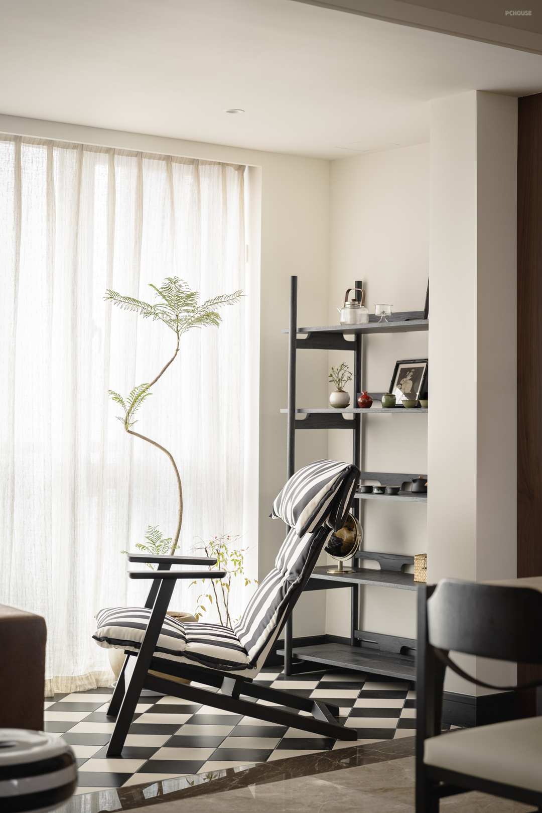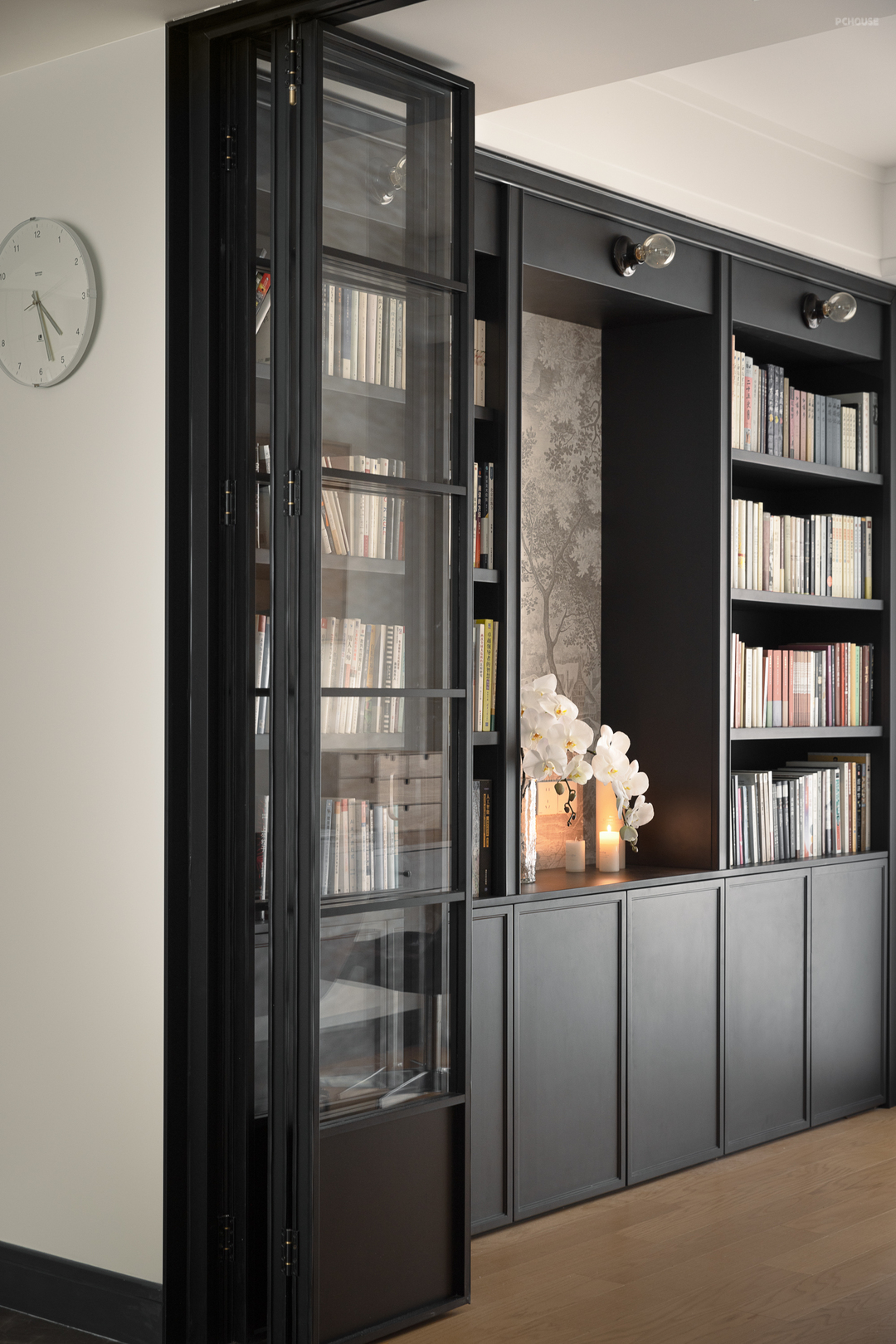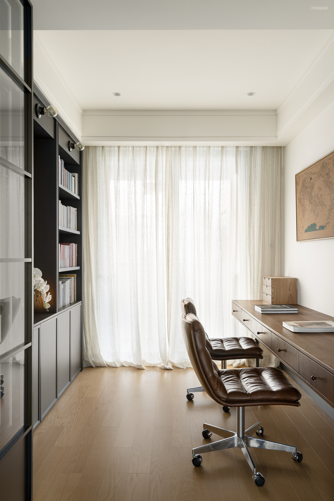 海量的书籍则是书房最重要的组成。书房可敞开也可封闭,是一个丰富且自在的空间。在160平方米的家中,男主人大多待在书房,女主人常在餐厅一角悠闲煮茶。