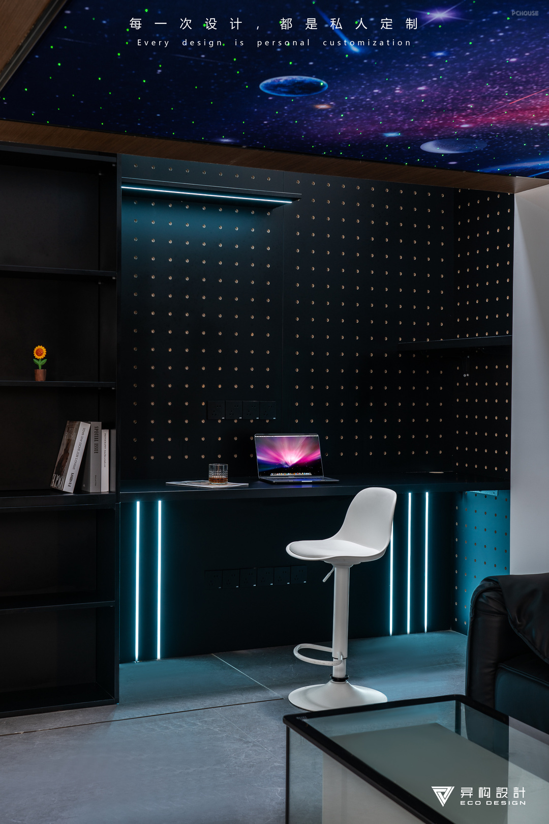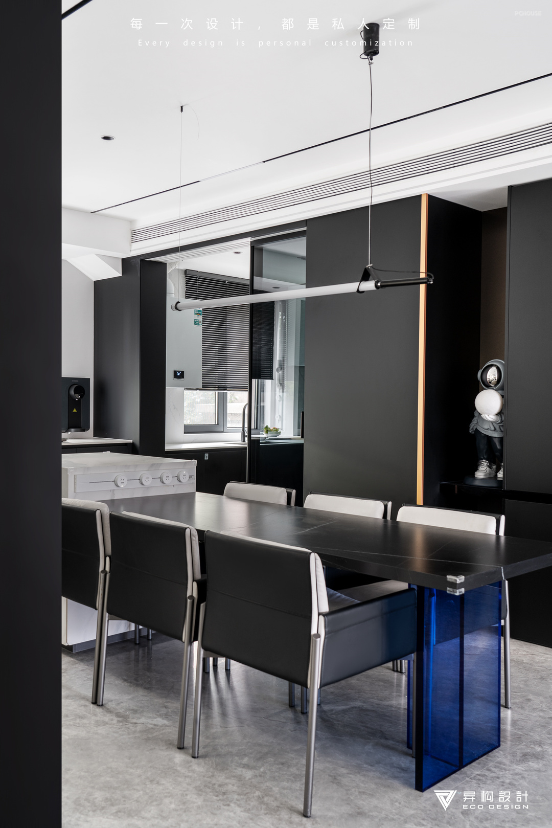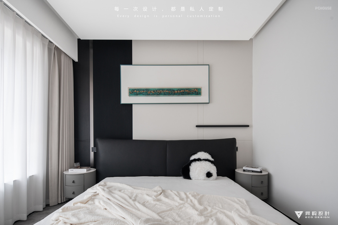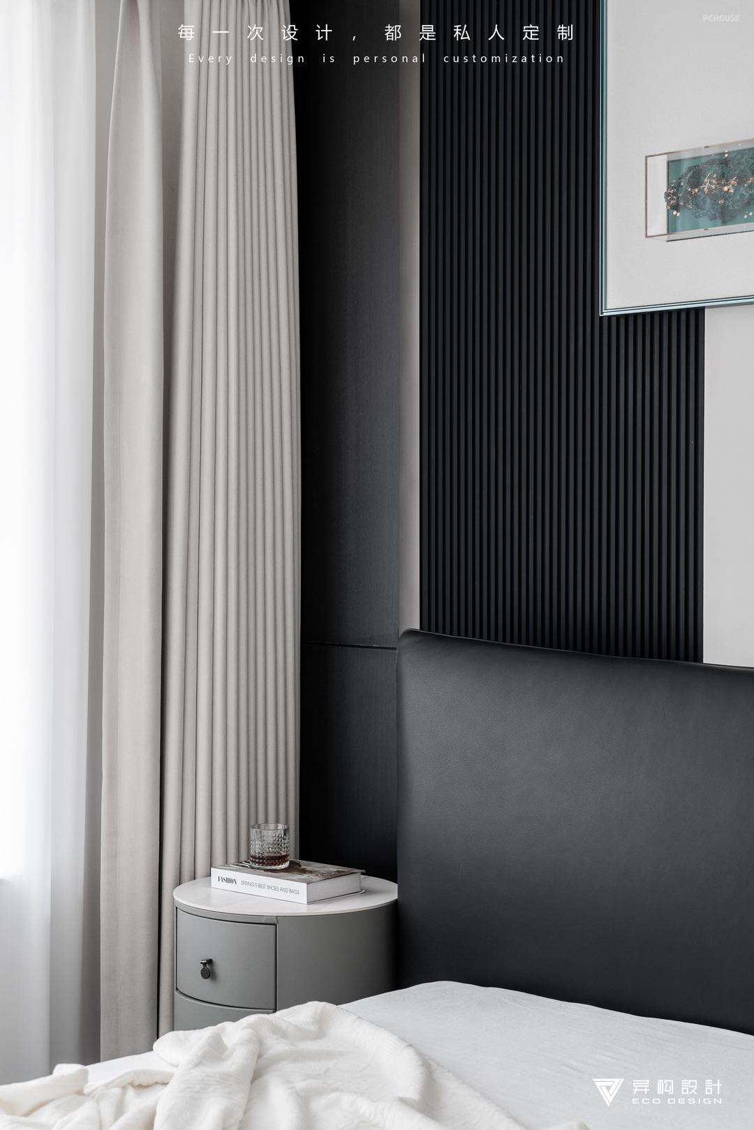 整个客厅简约高级,极简的黑白棕配色搭配整面落地窗,一踏进家门就能感受到简约风的清爽高级。电视背景做满墙电视柜设计,恰到好处的悬空留白与色彩对撞,增加客厅收纳空间的同时不显压抑,整体轻盈舒适。