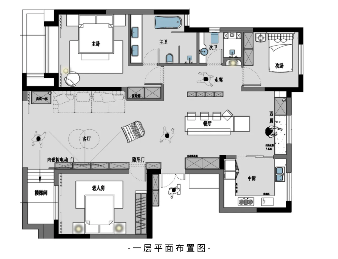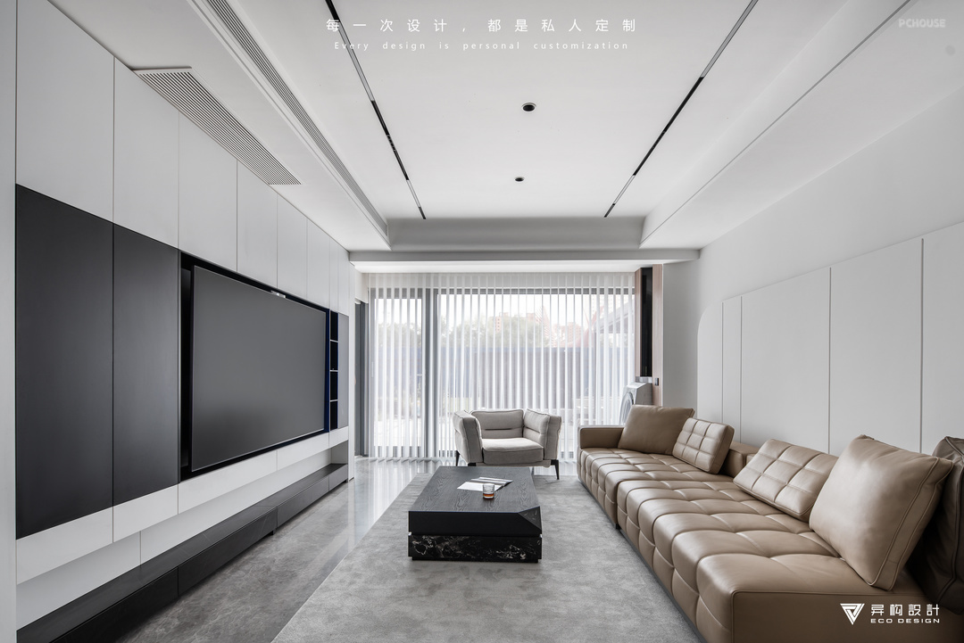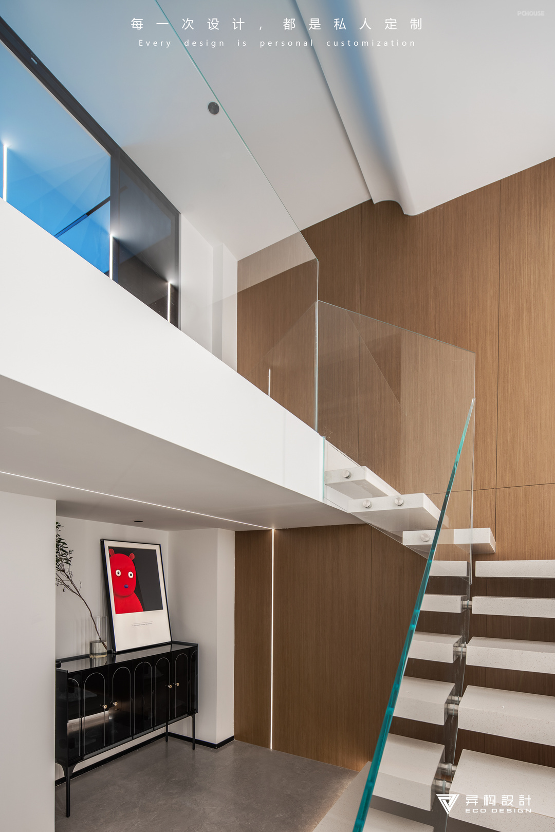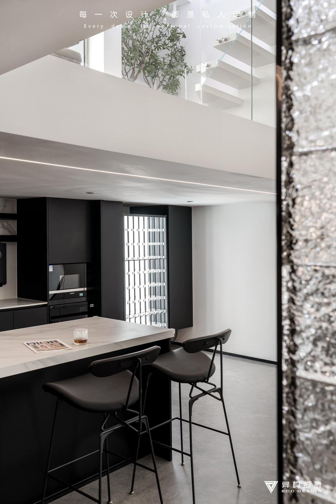 前言: 本案为底跃设计,业主喜欢清爽高级的现代简约风,追求简单、留白、功能性及美观性。设计师以黑白灰棕为主色调,搭配大理石、木格栅、木饰面、玻璃、金属等材质营造高级质感。同时利用底跃5.2米挑高,做挑空搭建变三层别墅,提升空间多功能性。