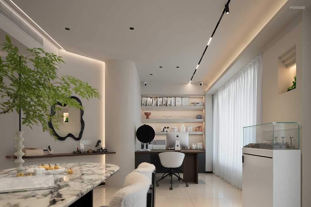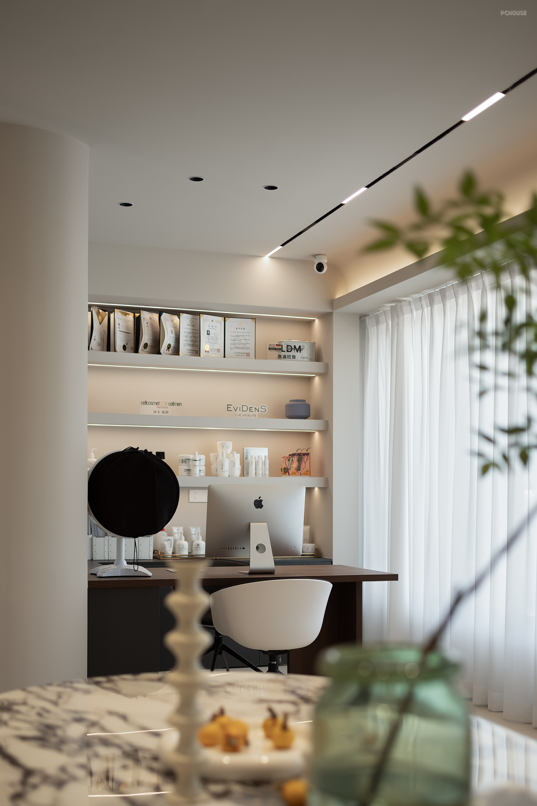 入户一改以往美妆店大大的店招,我们希望弱化店铺本身的商业属性,大部分的客人都是相处很久的朋友,希望打造一个居家的氛围感,你过来就是卸下疲惫,让皮肤和身体彻底放松的。