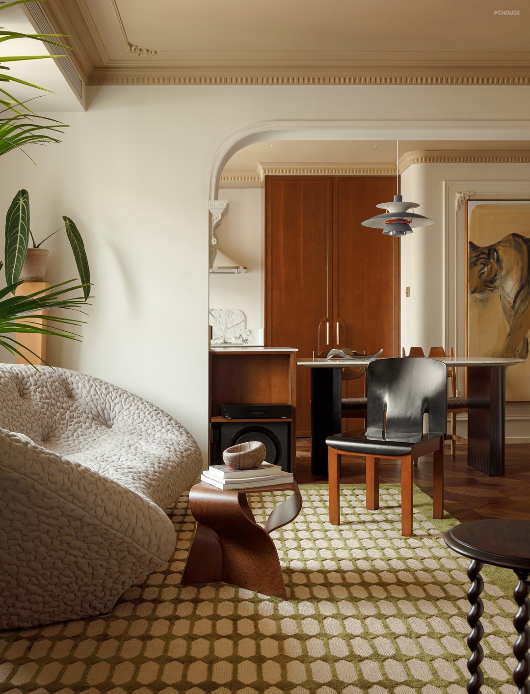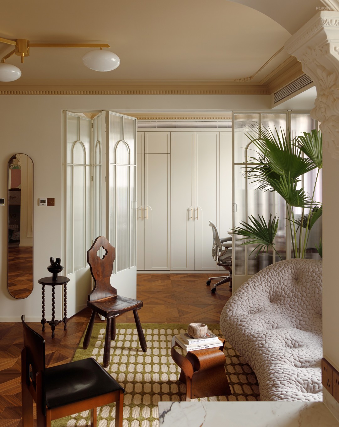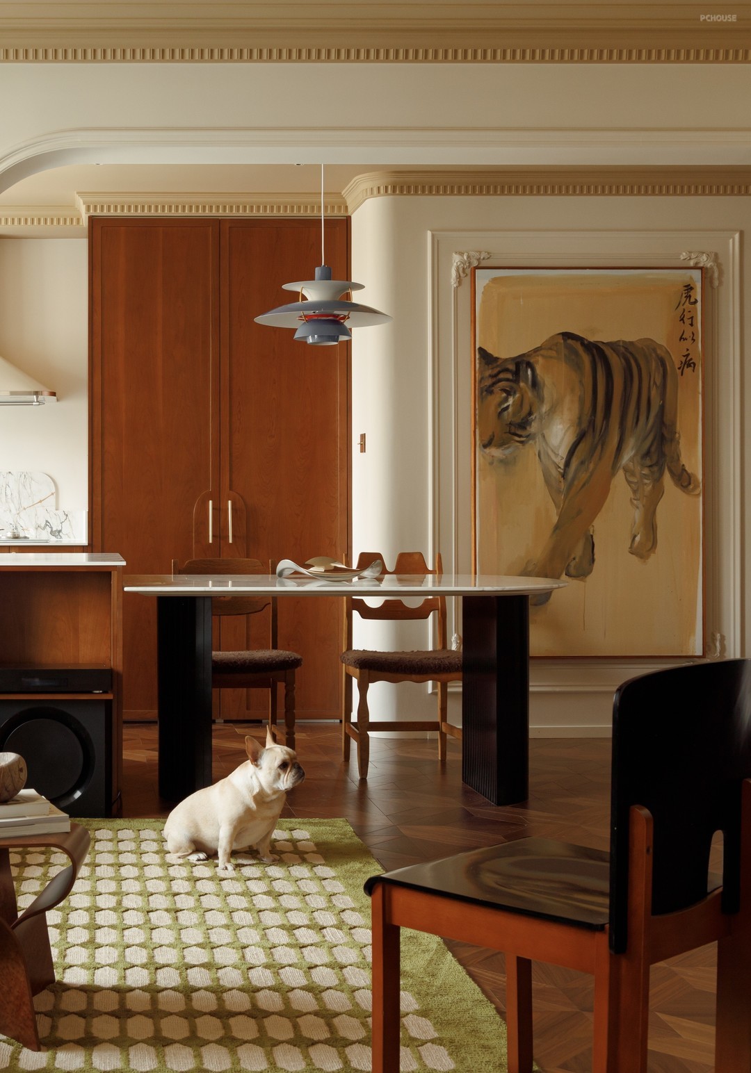 前言: 屋主杜先生在装修前就已经对家的轮廓有了明确的构思想法,让自己喜欢的家具和收藏成为这次家的主角,同时融入法式情调,希望家中每个角落都能让人想要驻足停留,坐下来看书,亦或是一场老友的小聚,呈现随意自在的居家氛围。