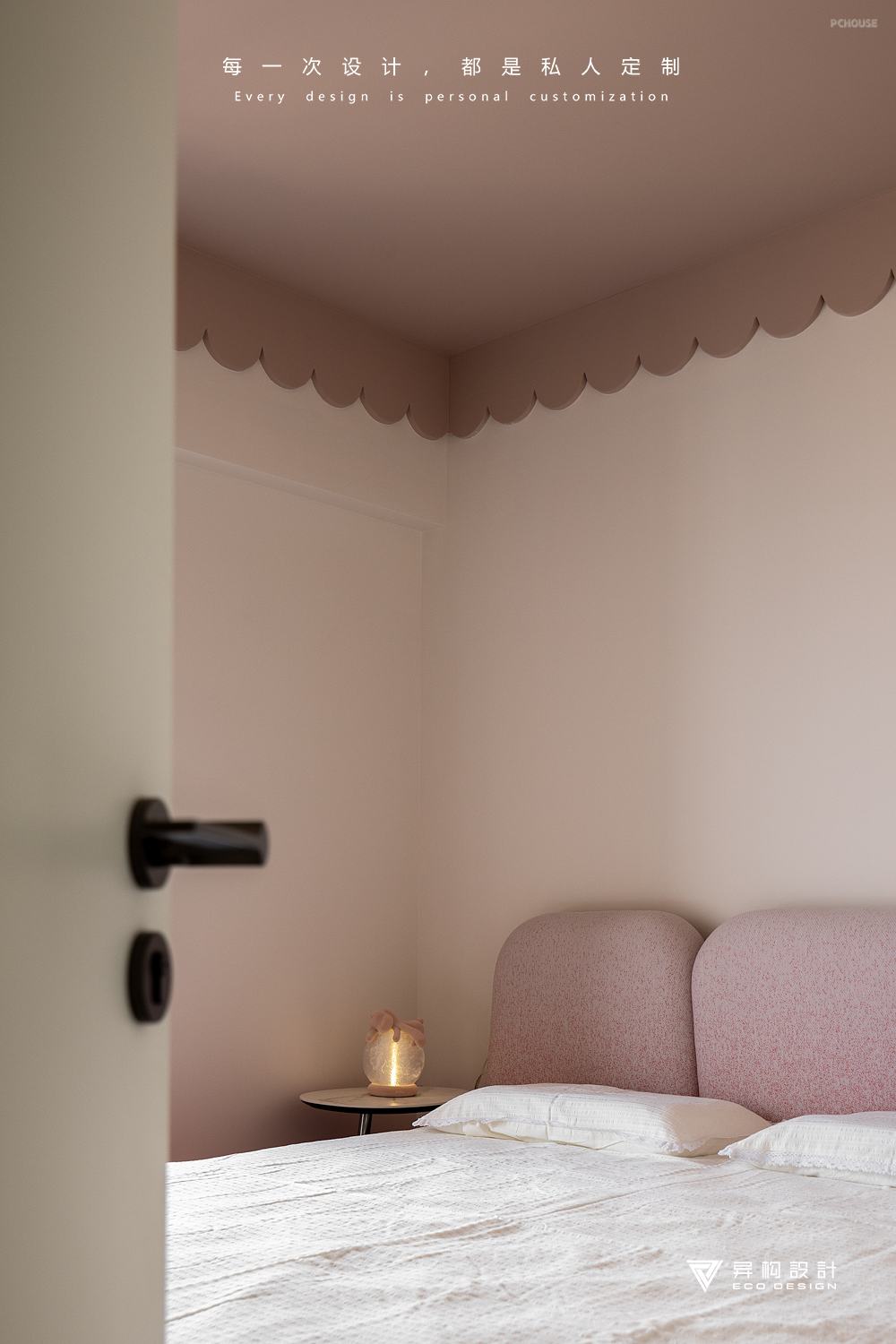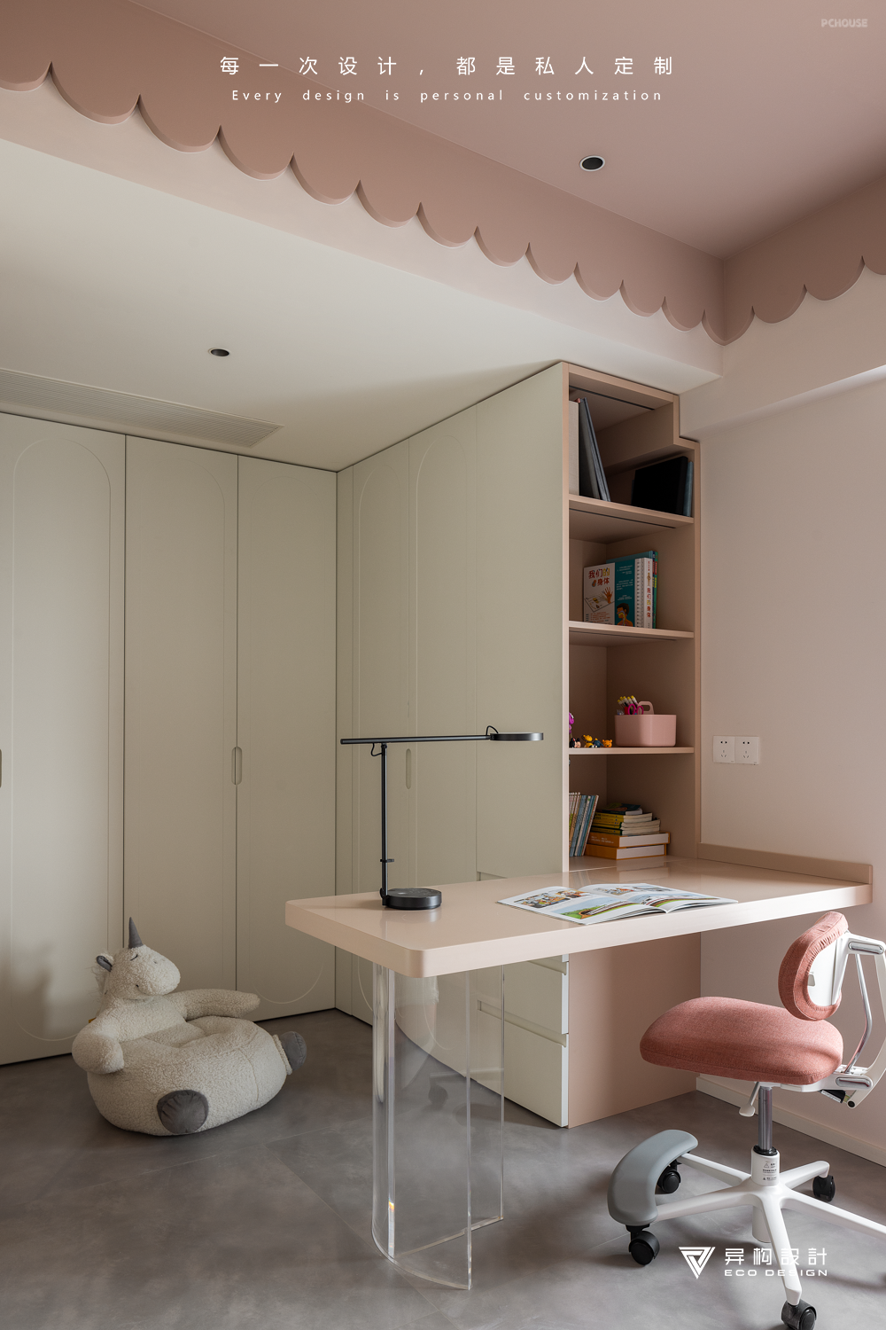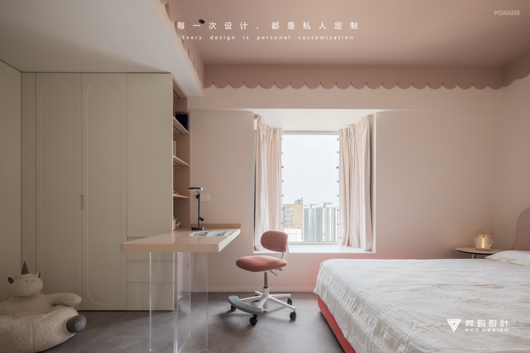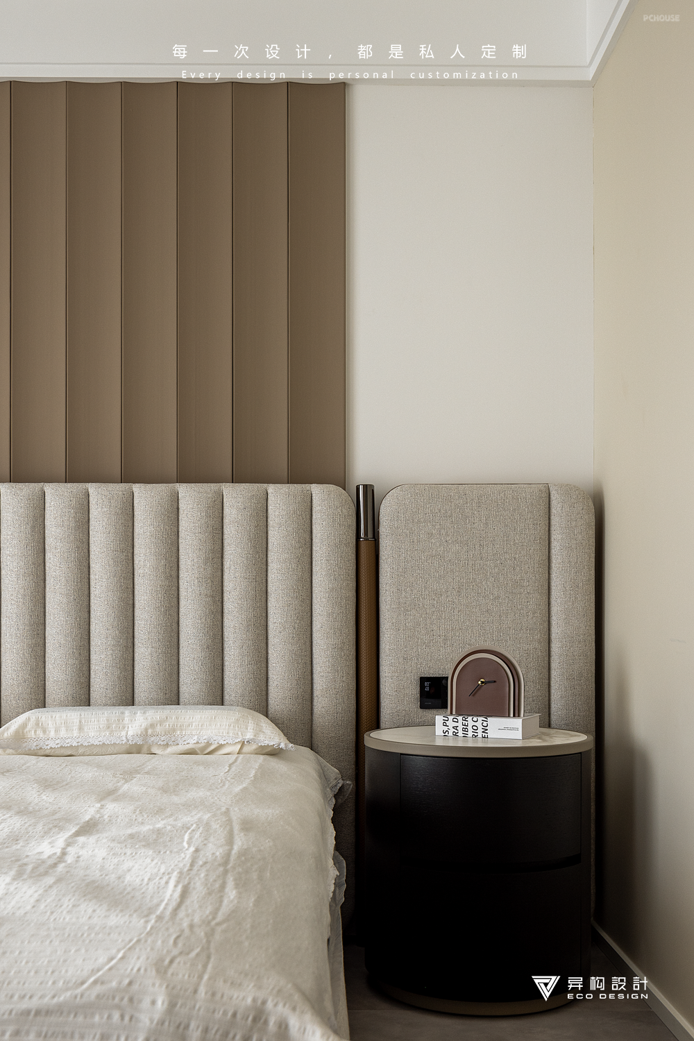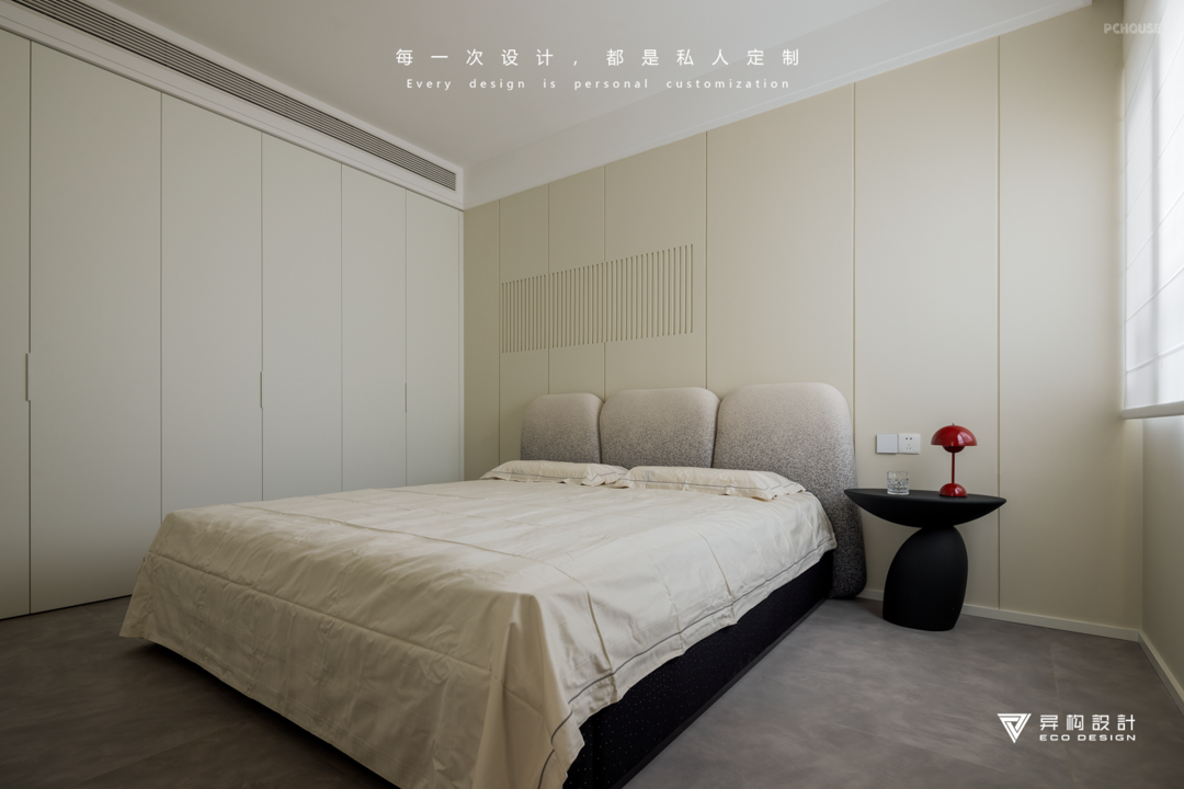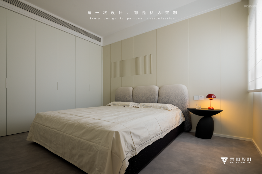 将原始户型的小书房改为开放式茶室,扩大会客厅面积。同时选择奶白色的纱帘将自然光柔和过渡进室内,结合原木材质与绿植,使空间更干净清爽、视觉效果更明亮开阔。