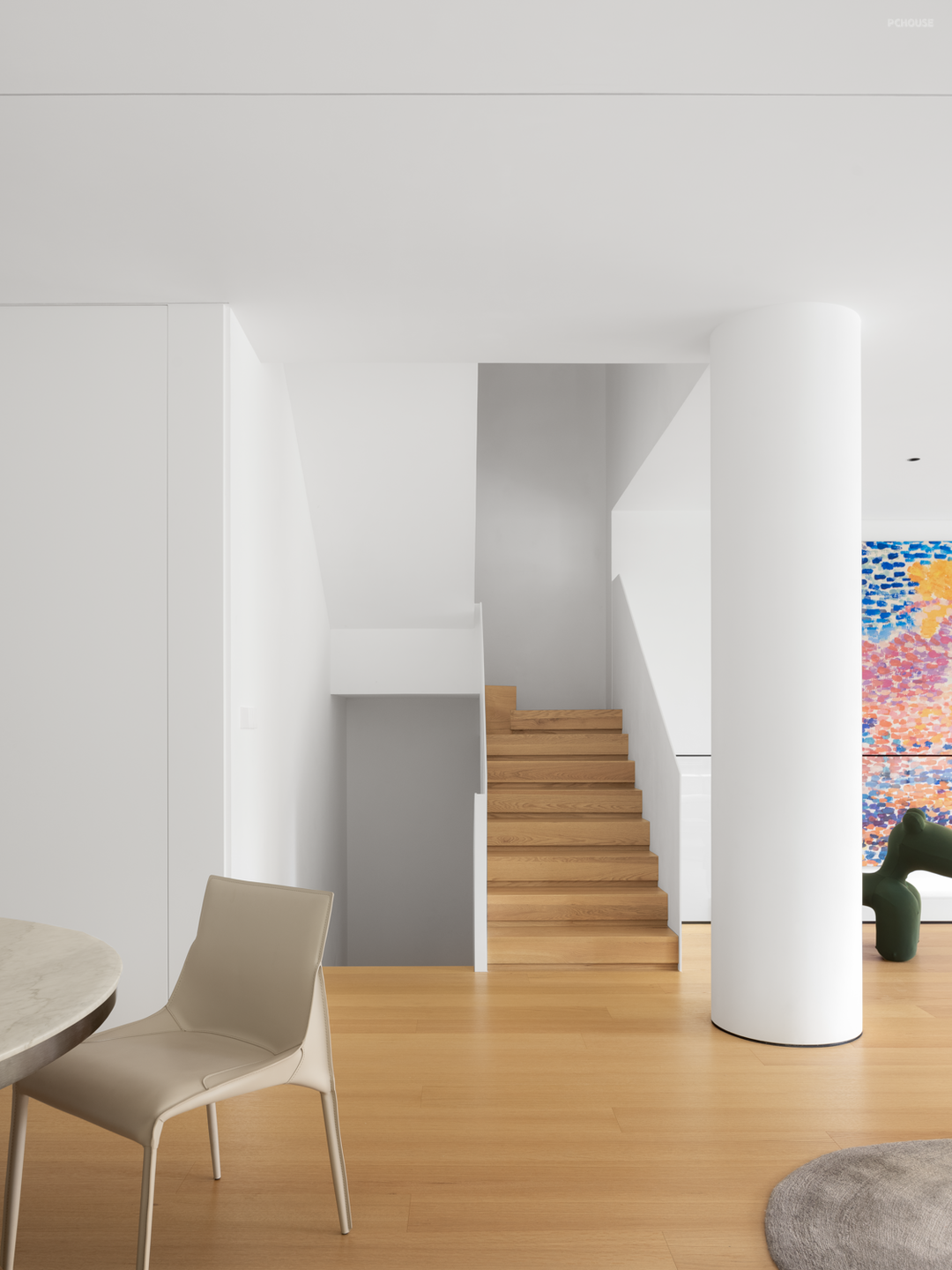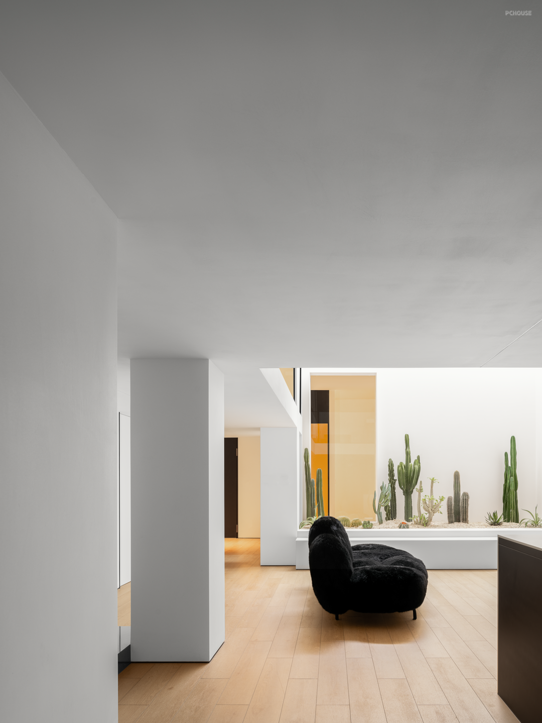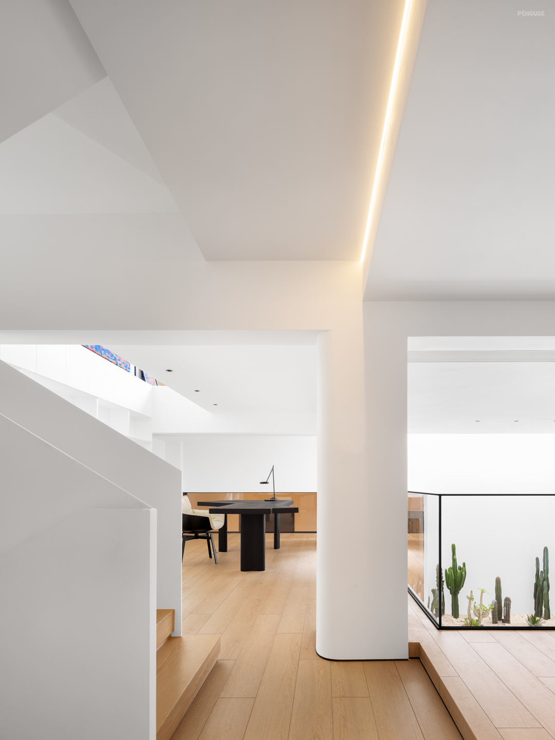 虽在立面上处于相对独立的角度,但平面上同样遵循全屋的开放式布局,墙体只做区域划分的功能,而不做完全的隔断,场景松弛而有序,引导情绪的展开。