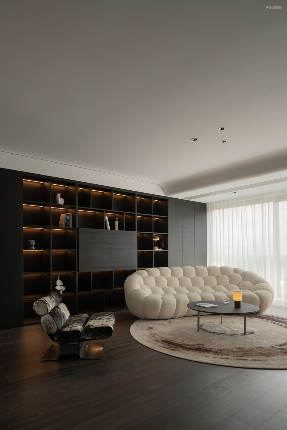 前言: 以”平行空间“为思考概念,设计将空间视为居住者内心世界的表达,描绘在快节奏都市生活背景下,内心所向往的”另一处平行空间“,时间相错,人物不变,却与外界无关,旨在挖掘内心深处的情感需求。