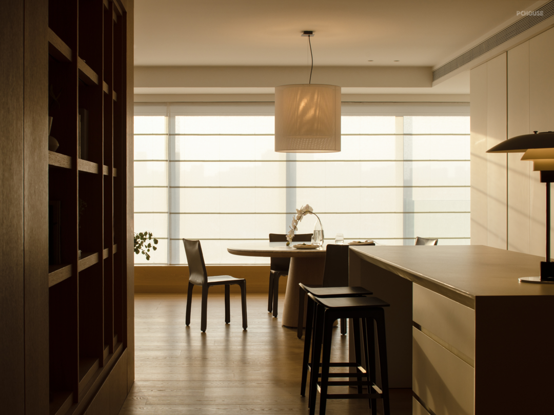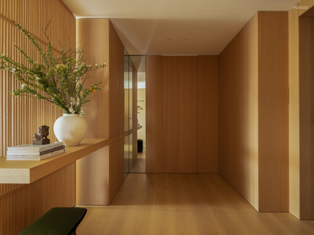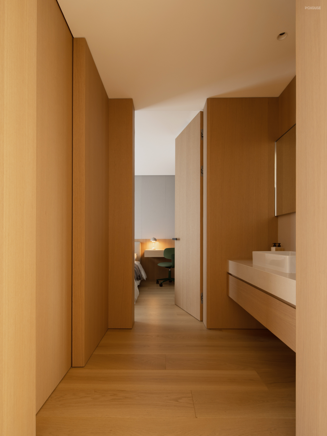 经统一的木色衔接,放大感官上的体量感,同时沉淀为温和煦暖的场域记忆。