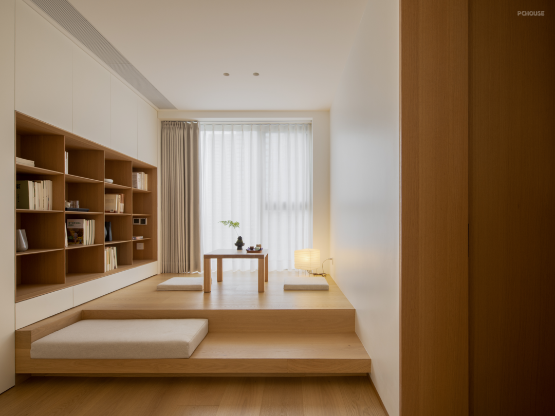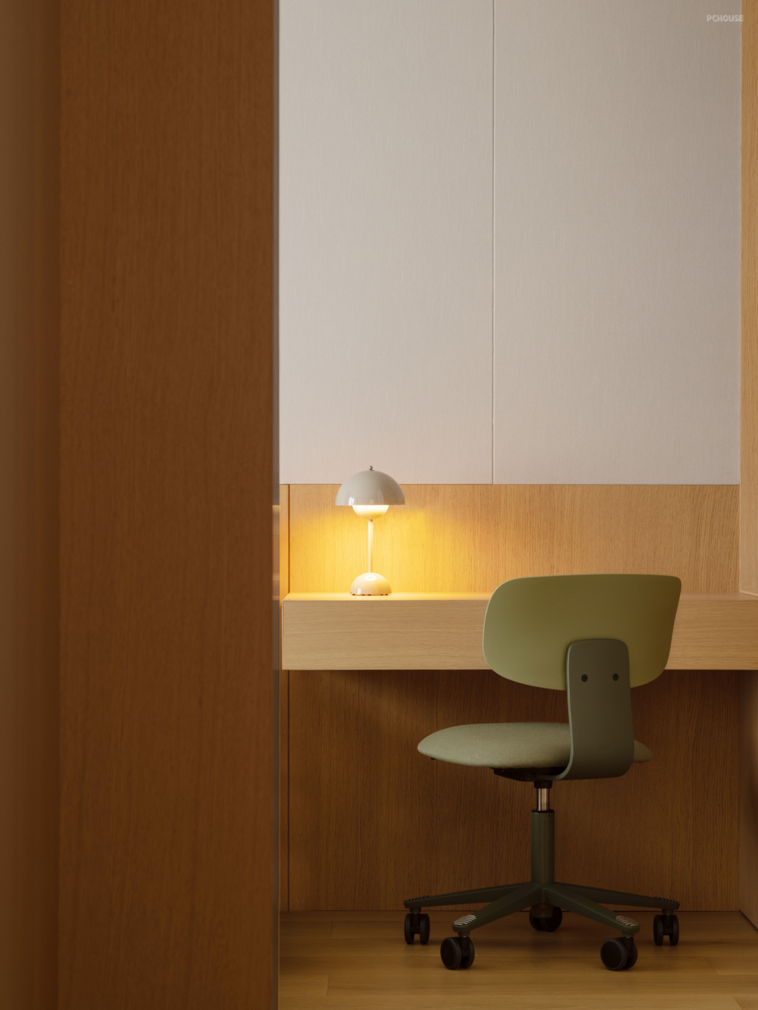 设计围绕着居住方的诉求,偕同木与空间共同落地一个宜居的心中家宅。