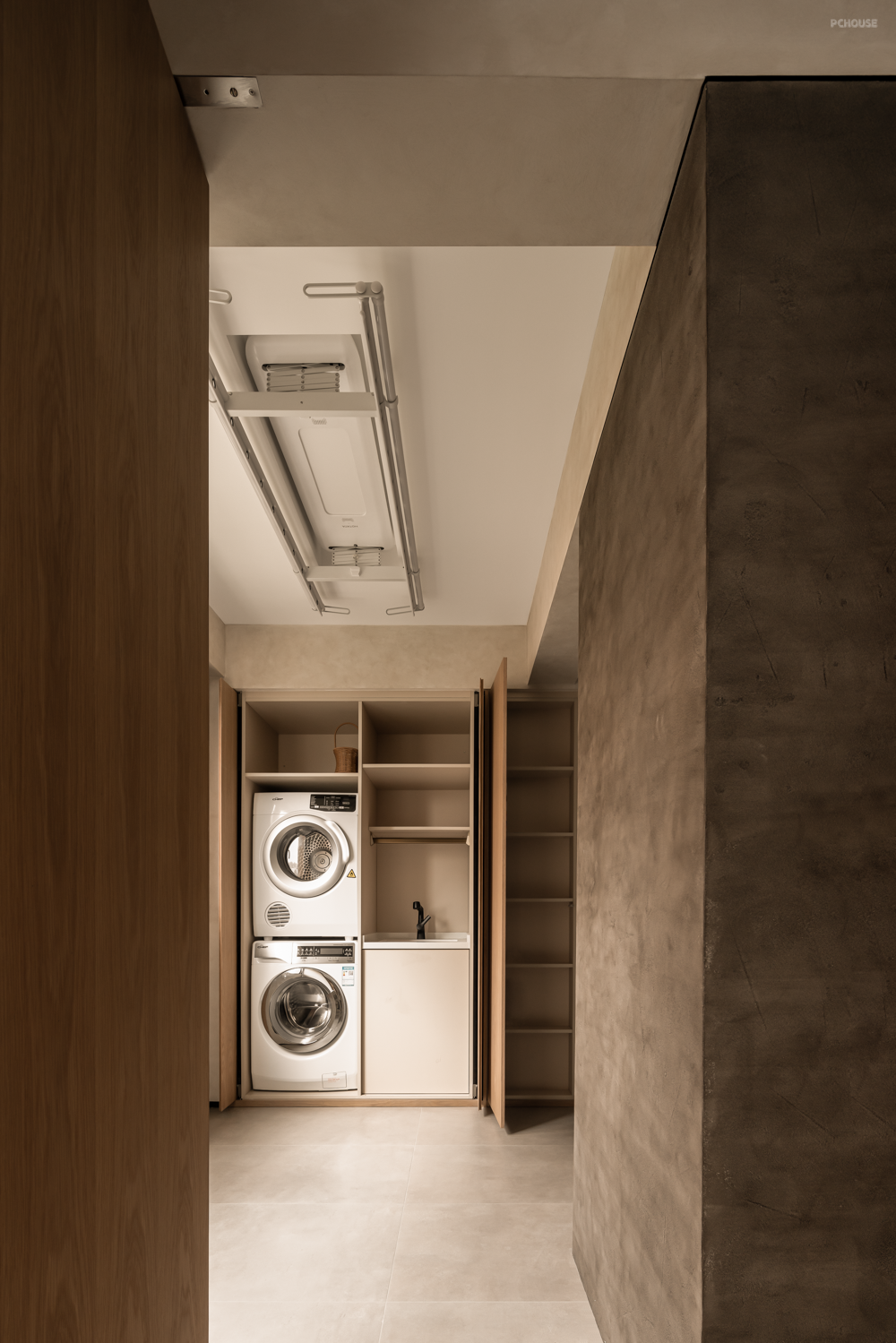 对于阳台的运用,很多人不甘心让几万1㎡的阳台变成专门洗衣晾晒的地方,提前规划好该区域的内部模块,根据阳台空间尺寸和功能模块提前预留尺寸来进行组合搭配,用定制隐形洗衣区体面的解决这个问题。