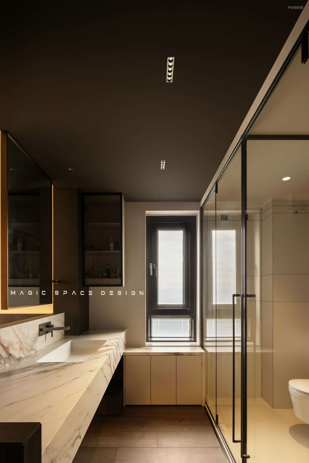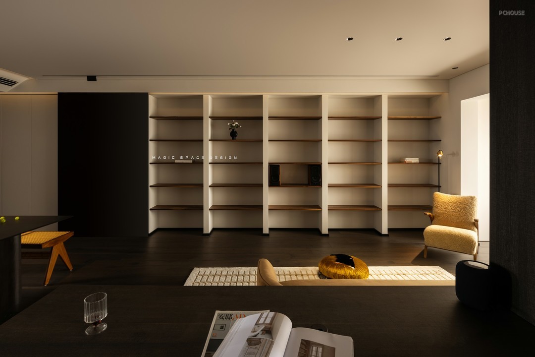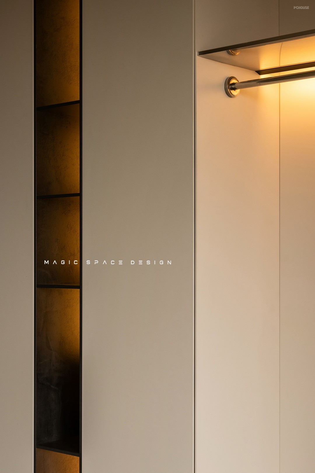 用具体的功能性布局,疏通人对每个场域的感知。阳台铺垫白净底色反射更多自然光,滋养空间深处,容纳洗衣功能,释放出规整的活动空间。复古跳色赋能优雅体块,与绿植相伴让人无限放松。开放式电竞空间背靠极简收纳系统,前接敞阔丰富的空间情态。