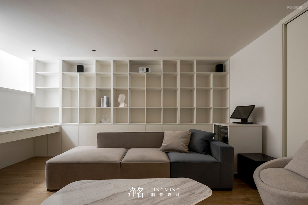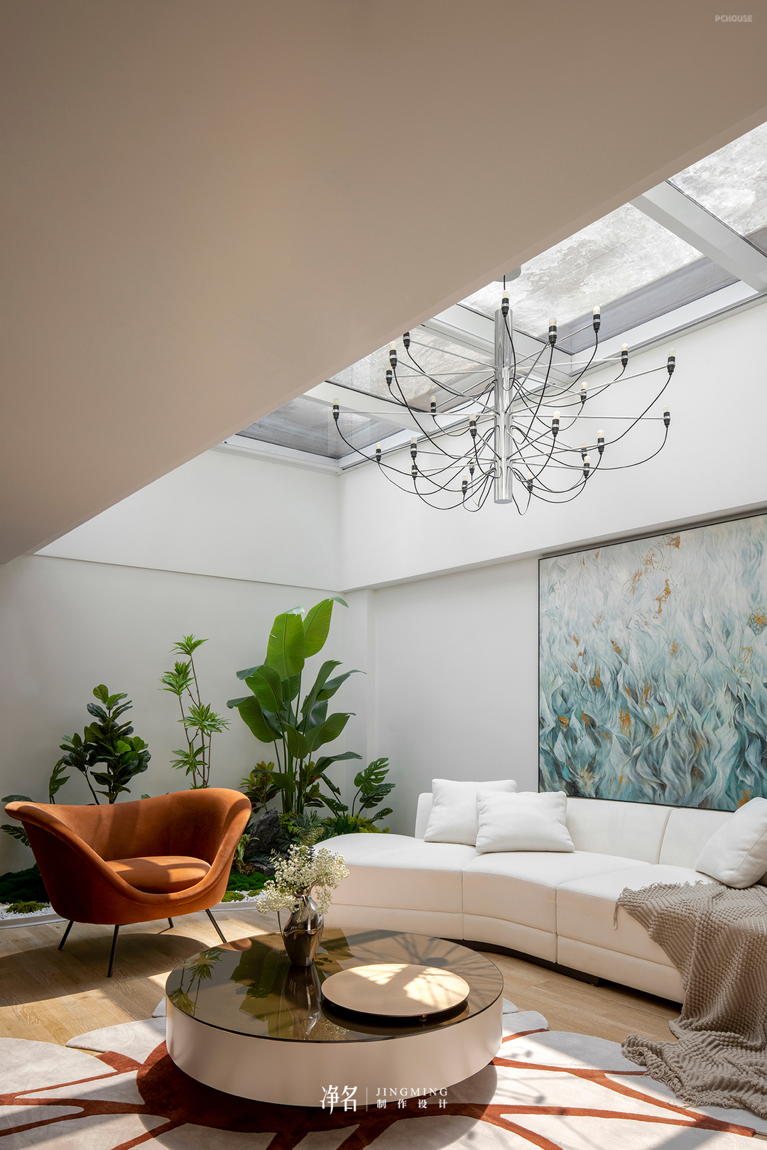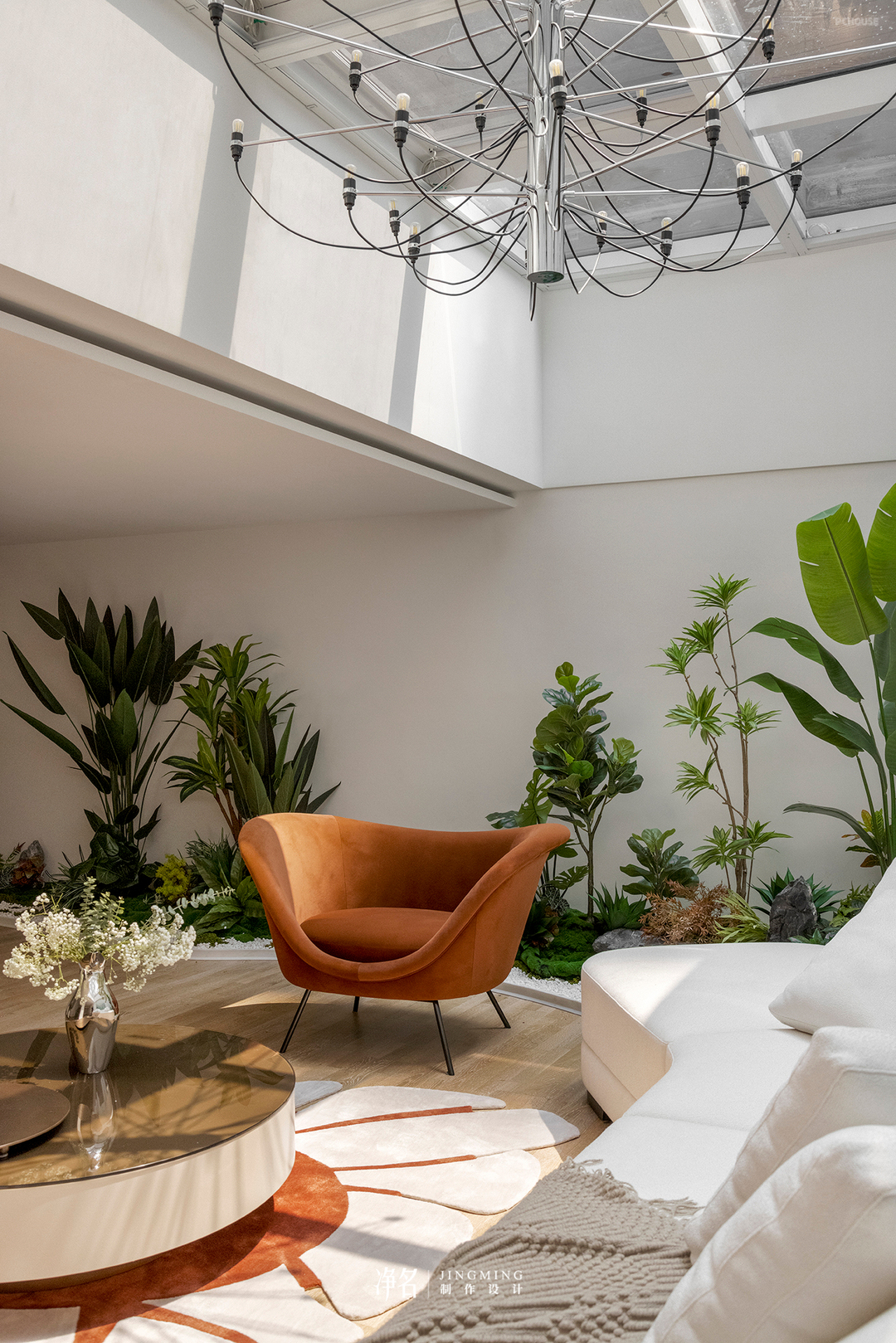 我们接手时,别墅硬装已经完成,原来装修时硬装做了现代极简风格。硬装完工后业主发现,现代风格在用于直播或者招待朋友时,显得过于简洁和单调。所以,软装上业主期望在房子中增添一些出彩的家具和颜色。